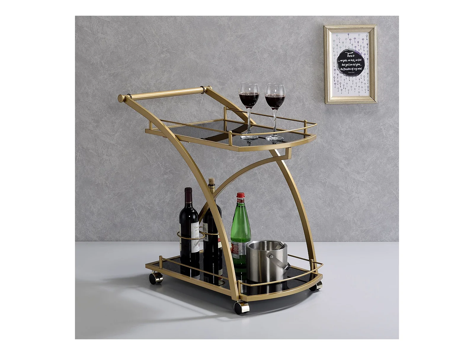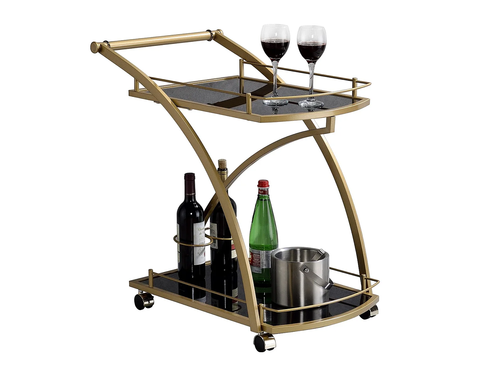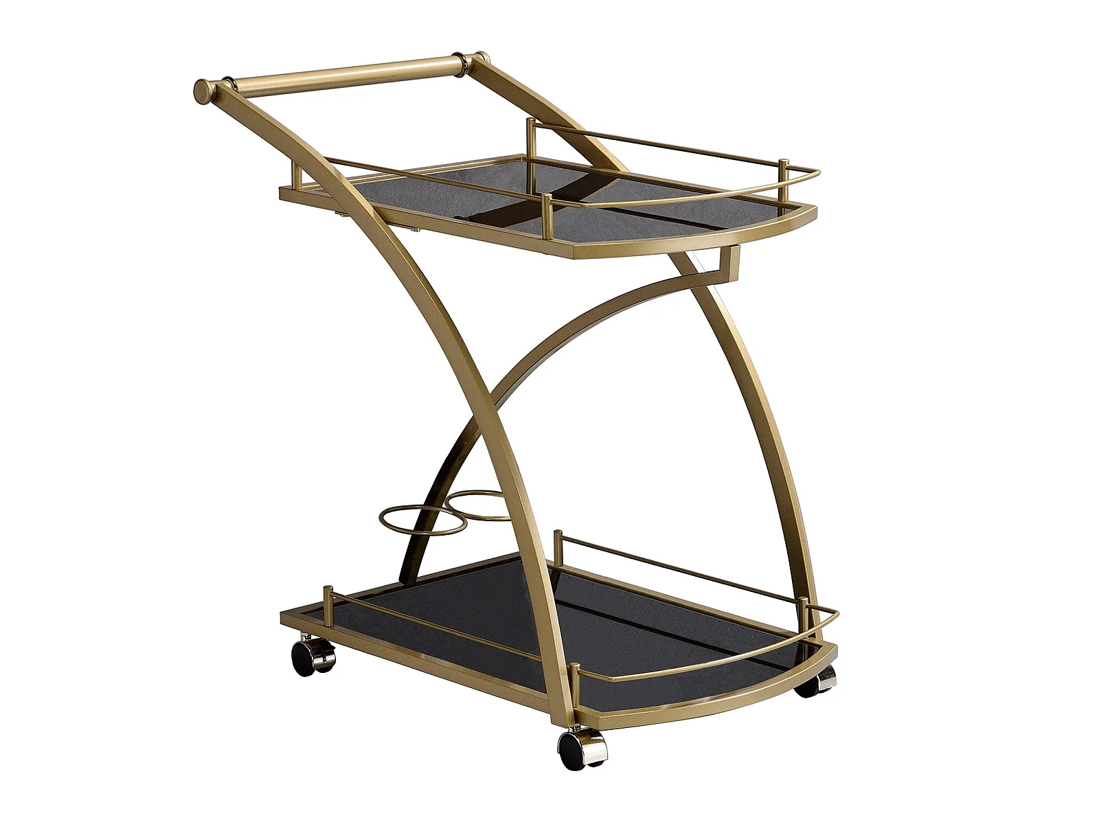 Chariot de service EVO chariot à thé et boisson desserte de cuisine à roulettes en métal doré 2 plateaux en verre trempé noir