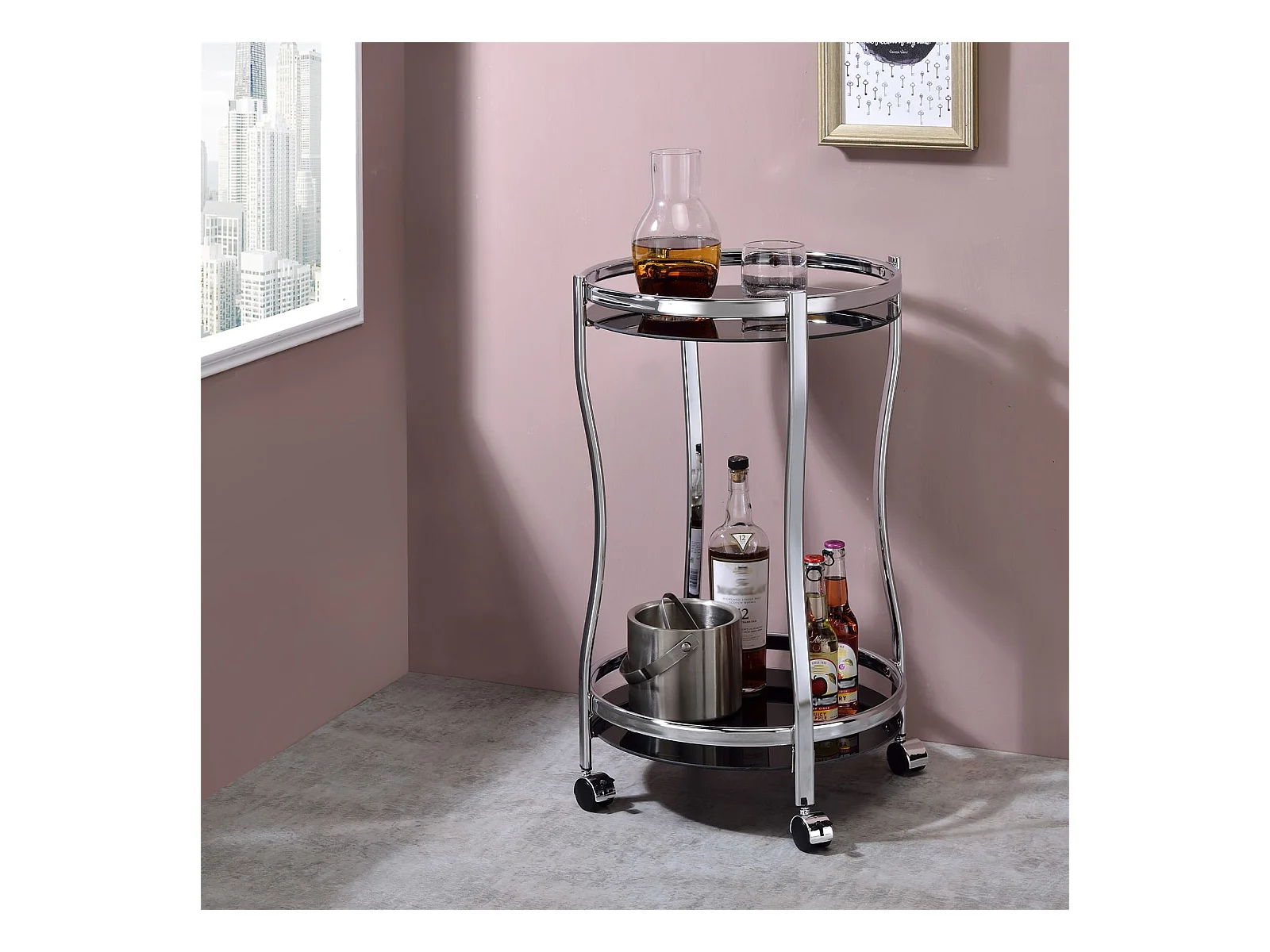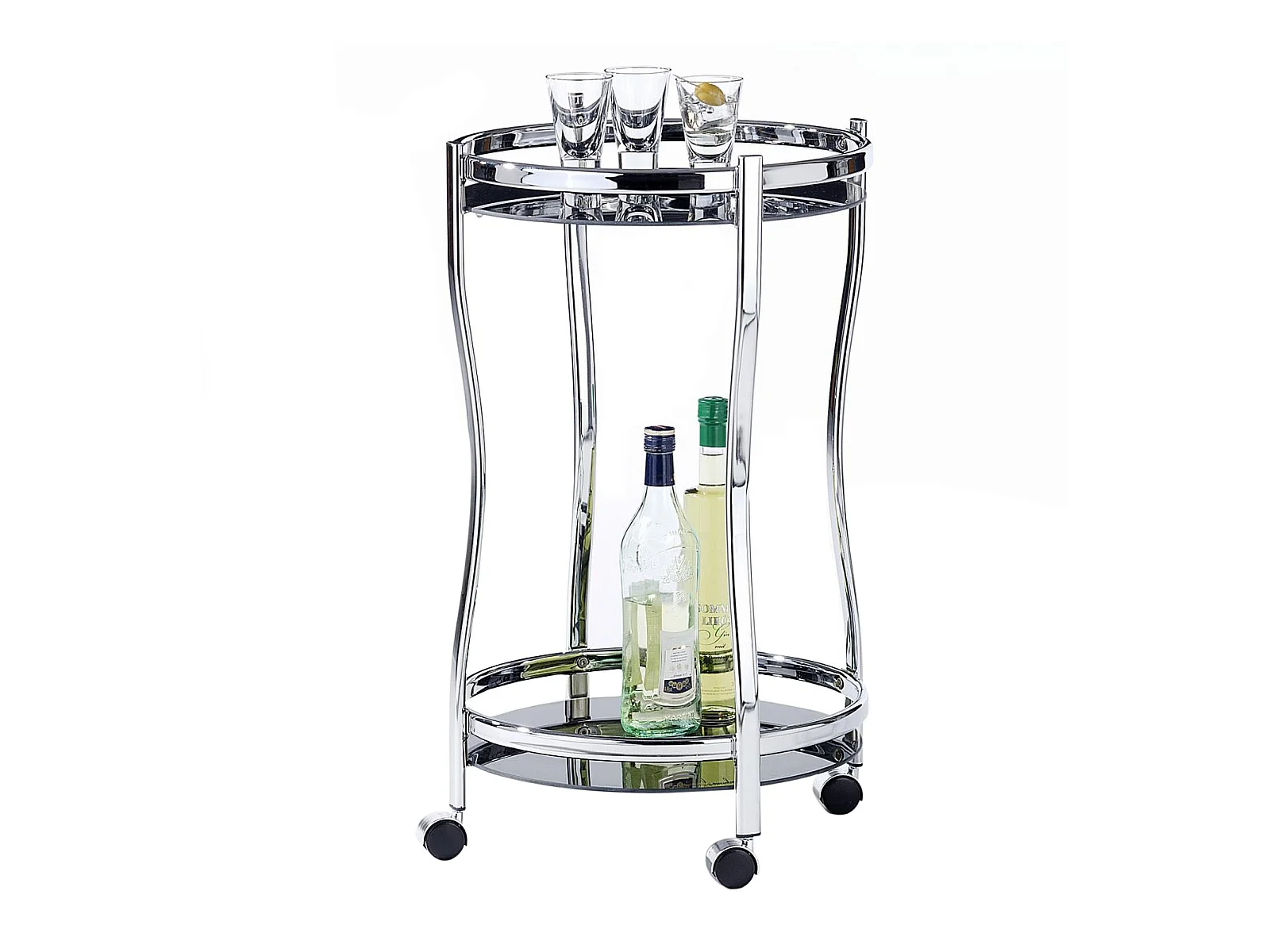 Chariot de service VEGA table d'appoint ronde sur roulettes chariot à thé et boisson en métal chromé 2 étagères en verre trempé noir
