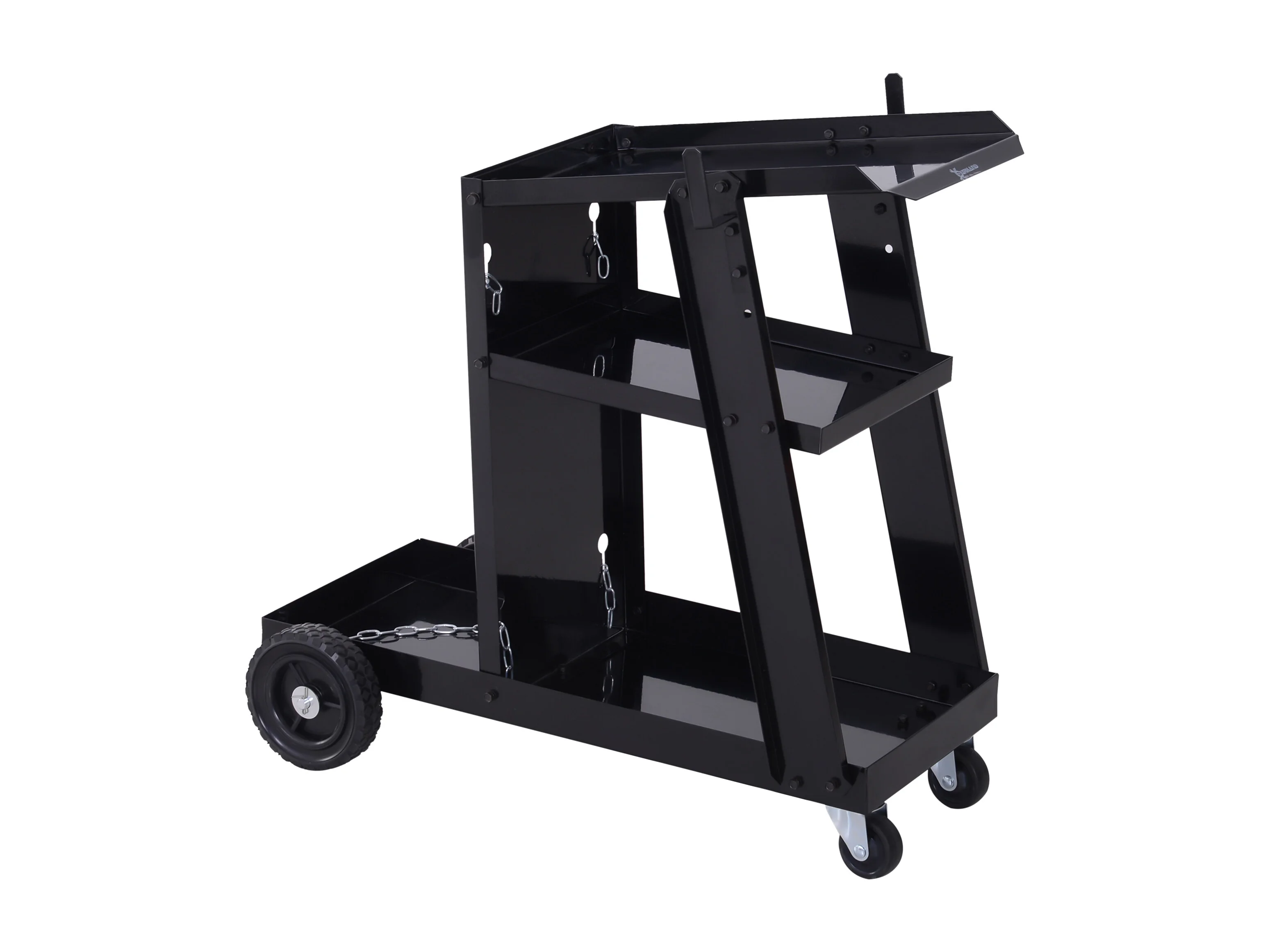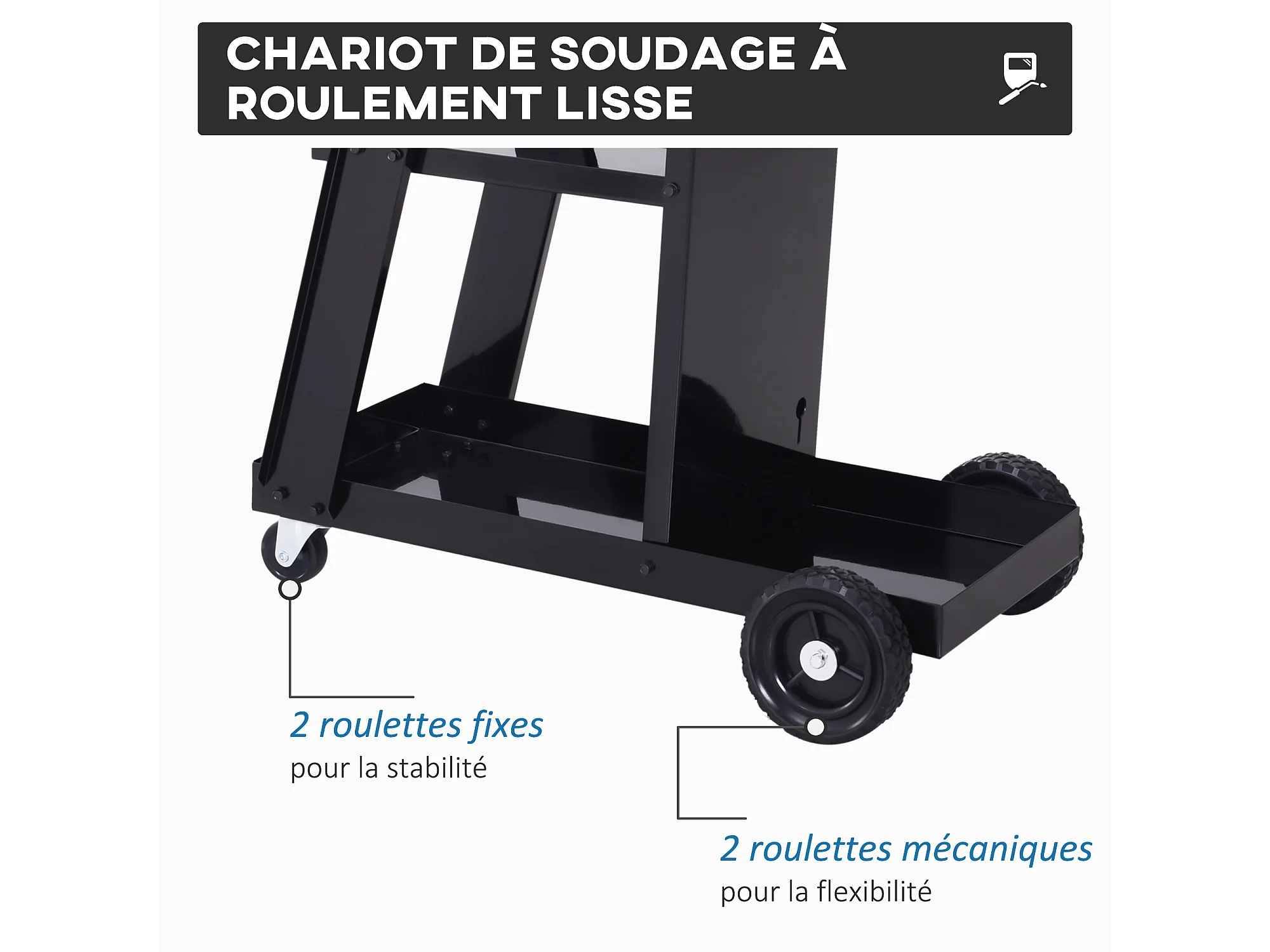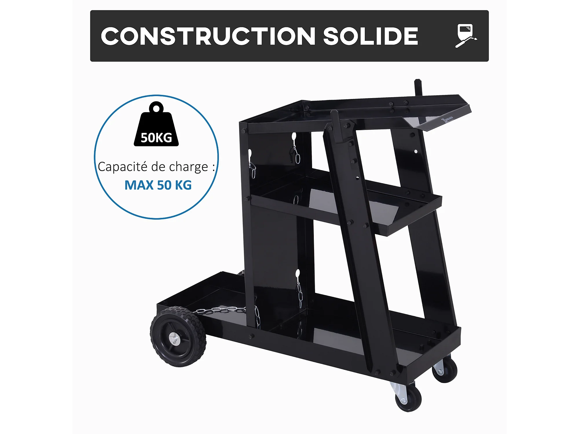 Chariot de soudage à 3 niveaux mobile 4 roues - poste à souder - support pour bouteille avec chaînes de soutien - acier noir