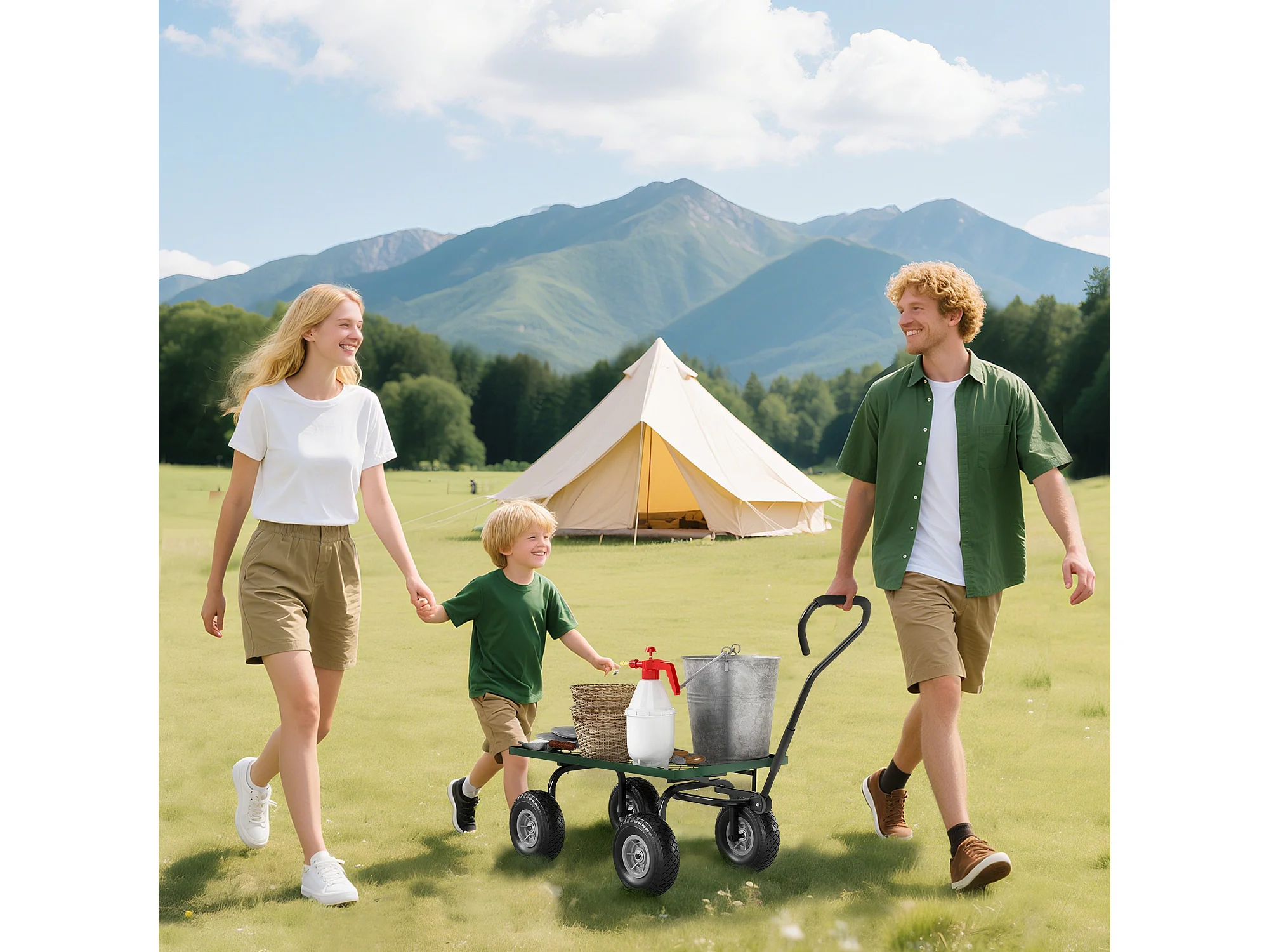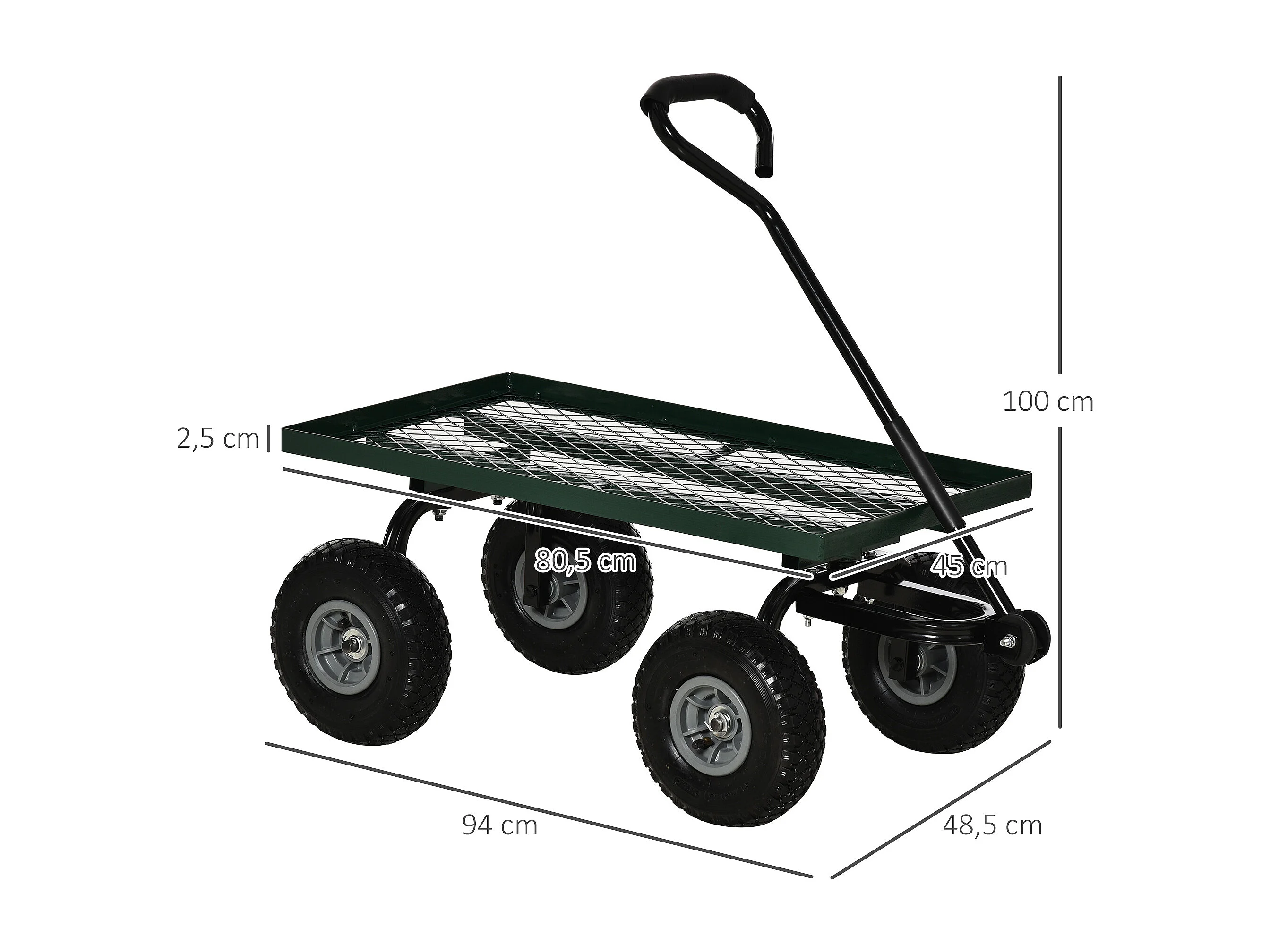 Chariot de transport jardin remorque à main charrette à bras 4 roues 94L x 48,5l x 100H cm charge max. 150 Kg métal vert