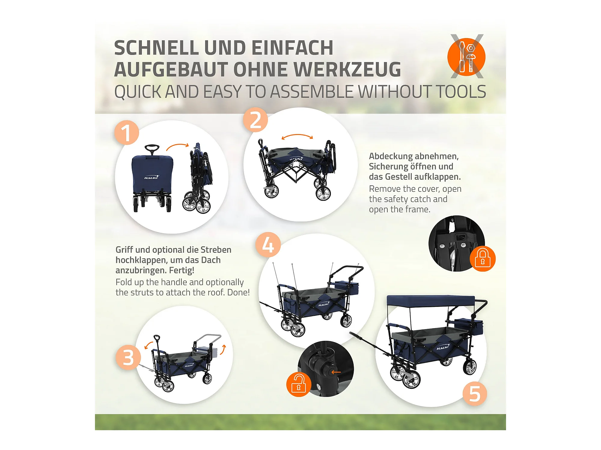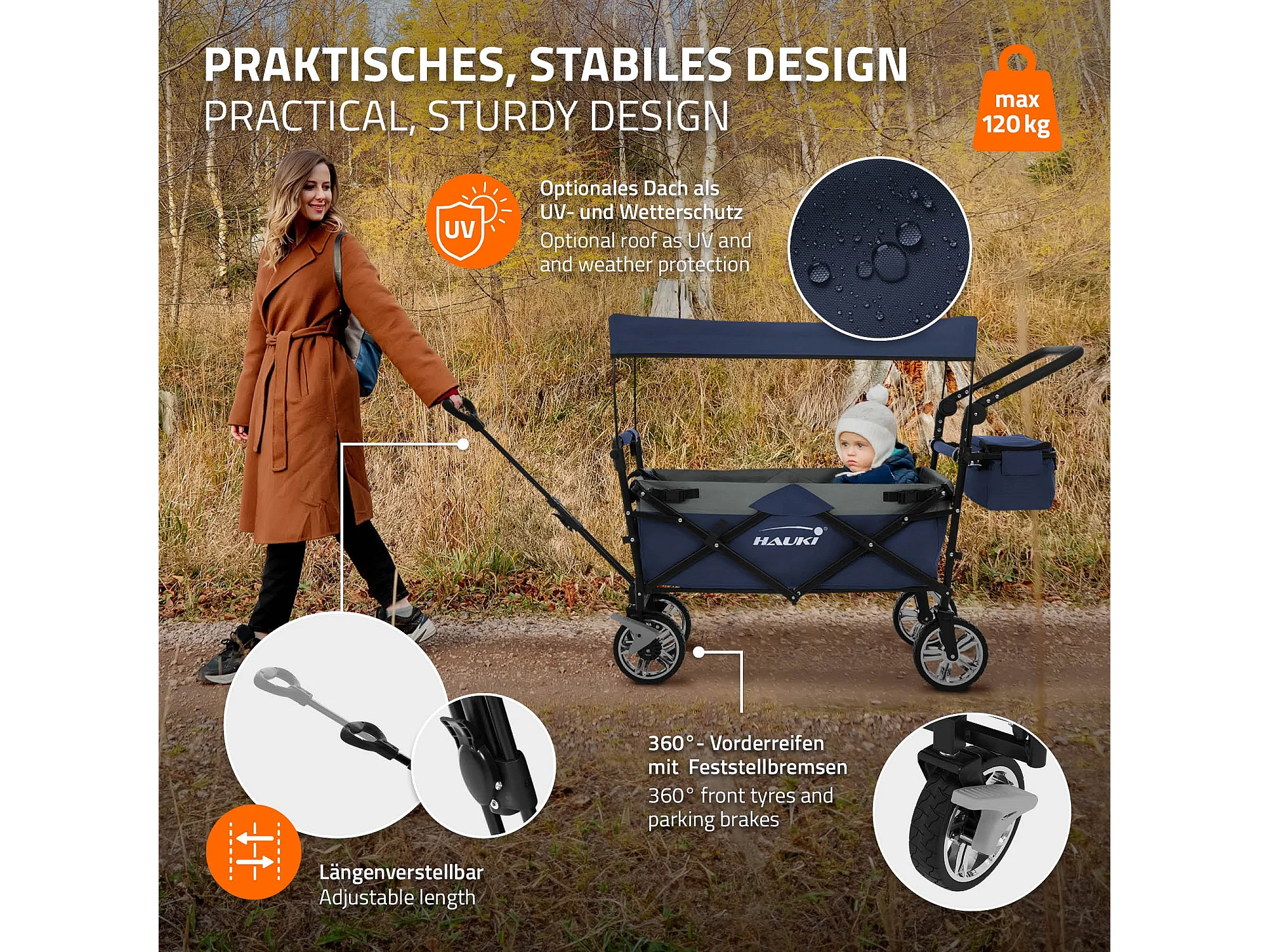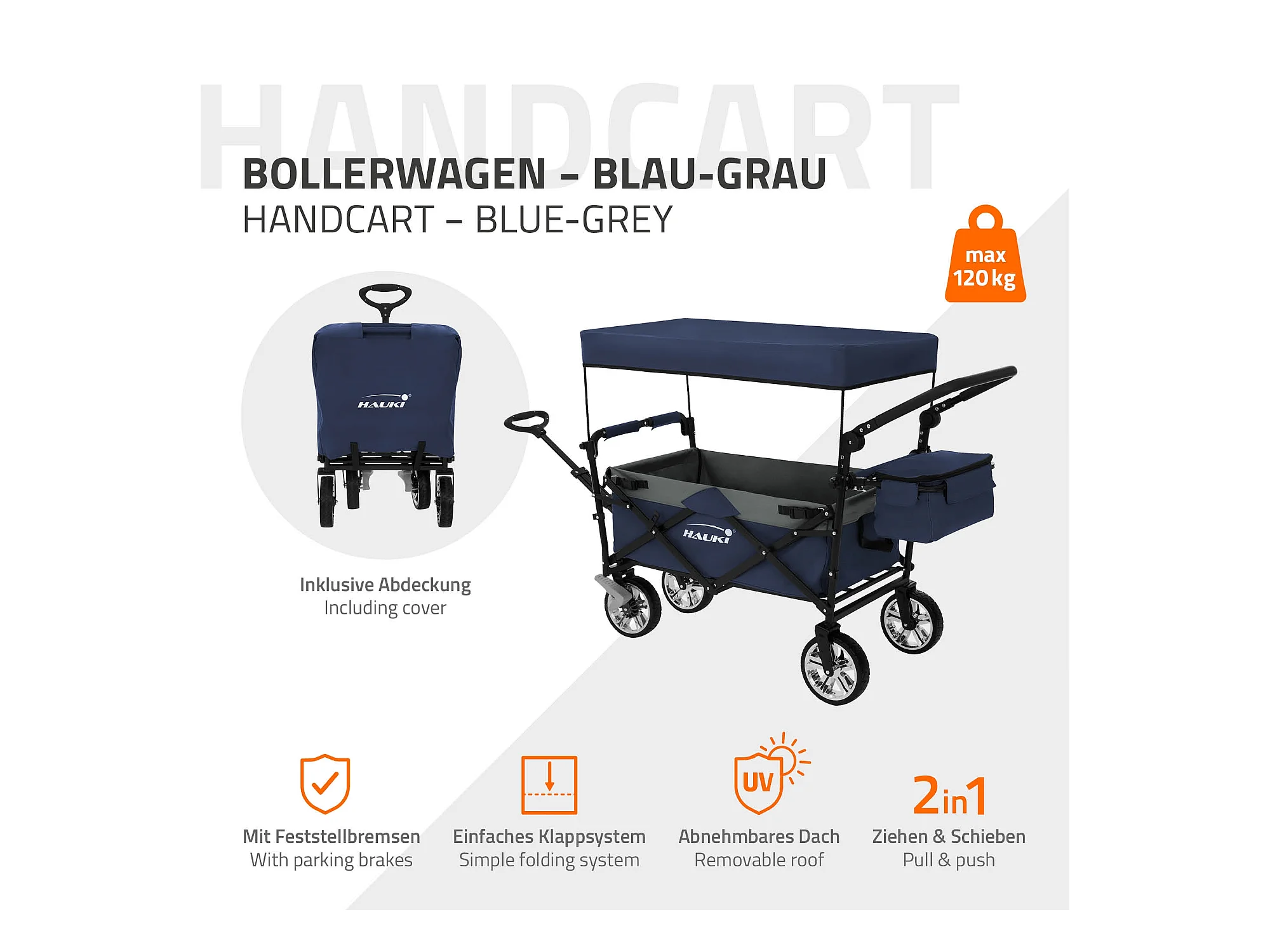 Chariot de transport pliable avec toit/sac bleu-gris pour enfants charge 120 kg