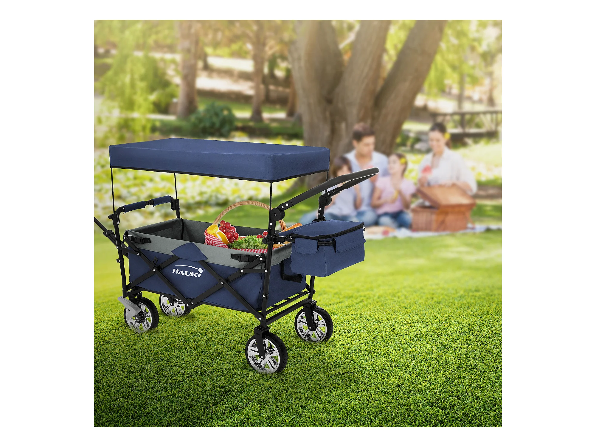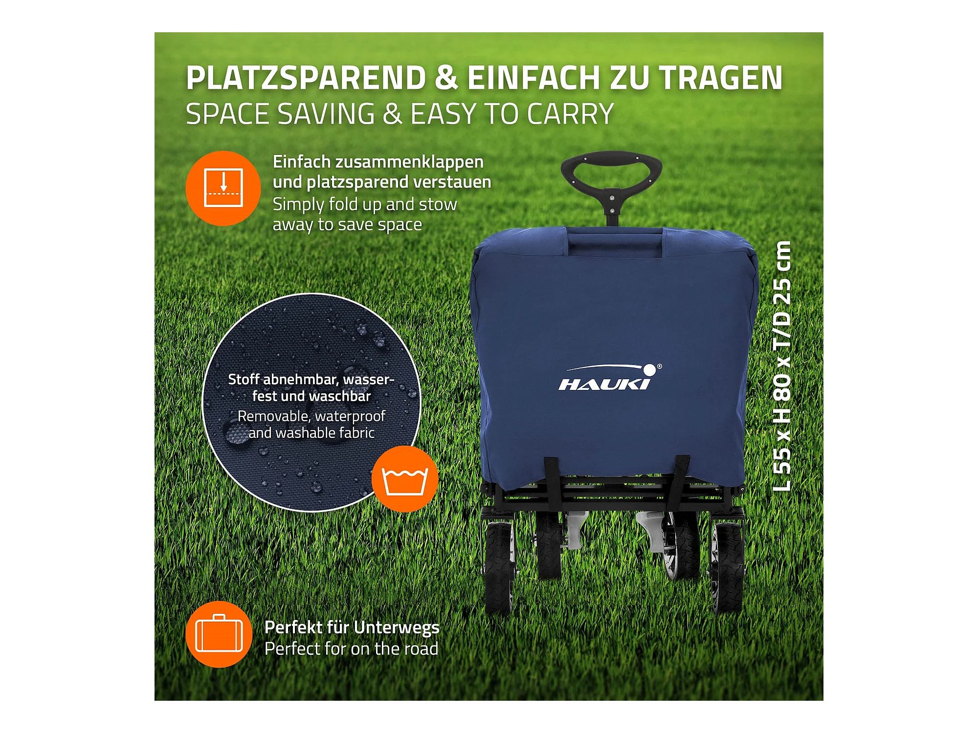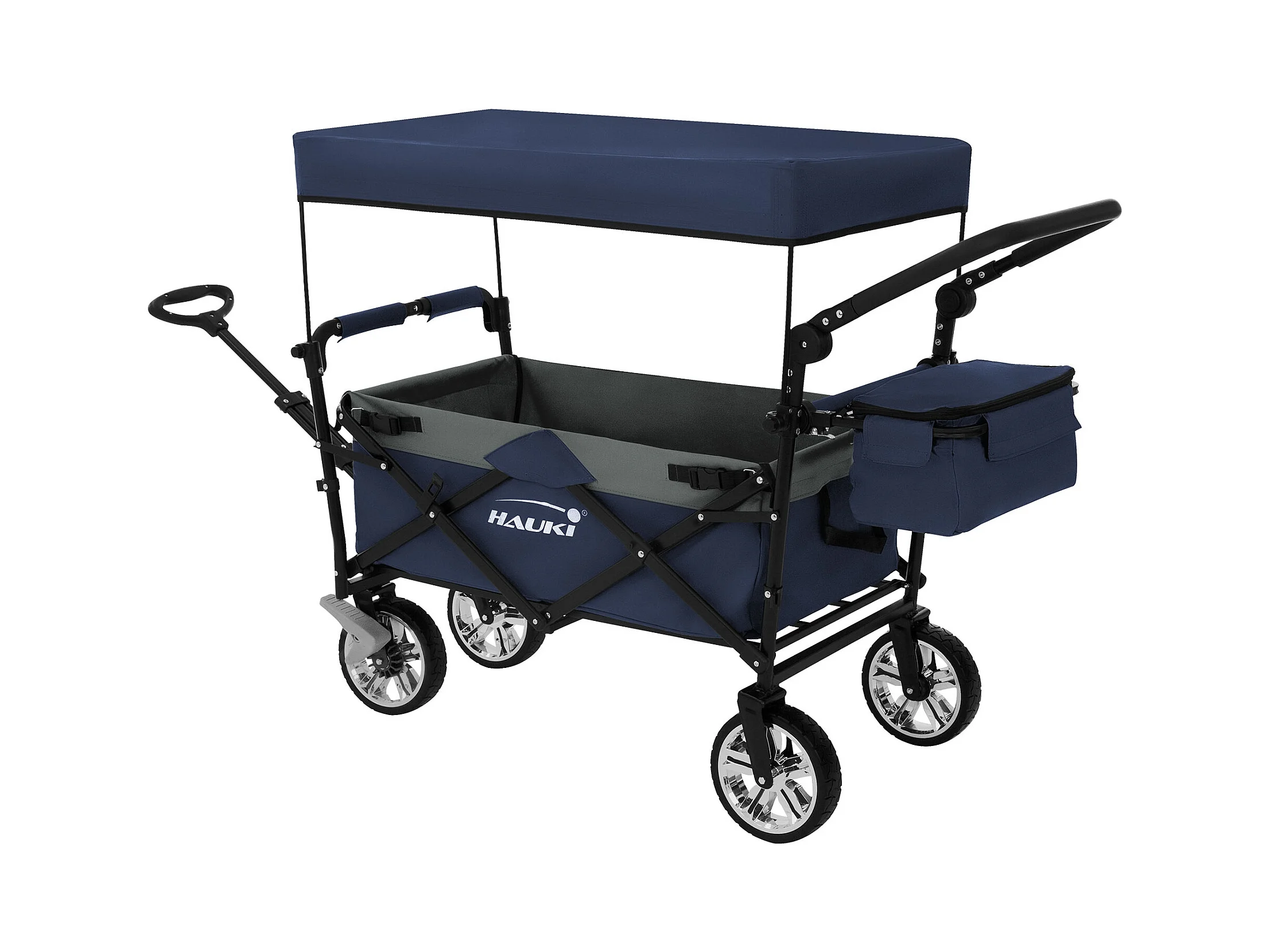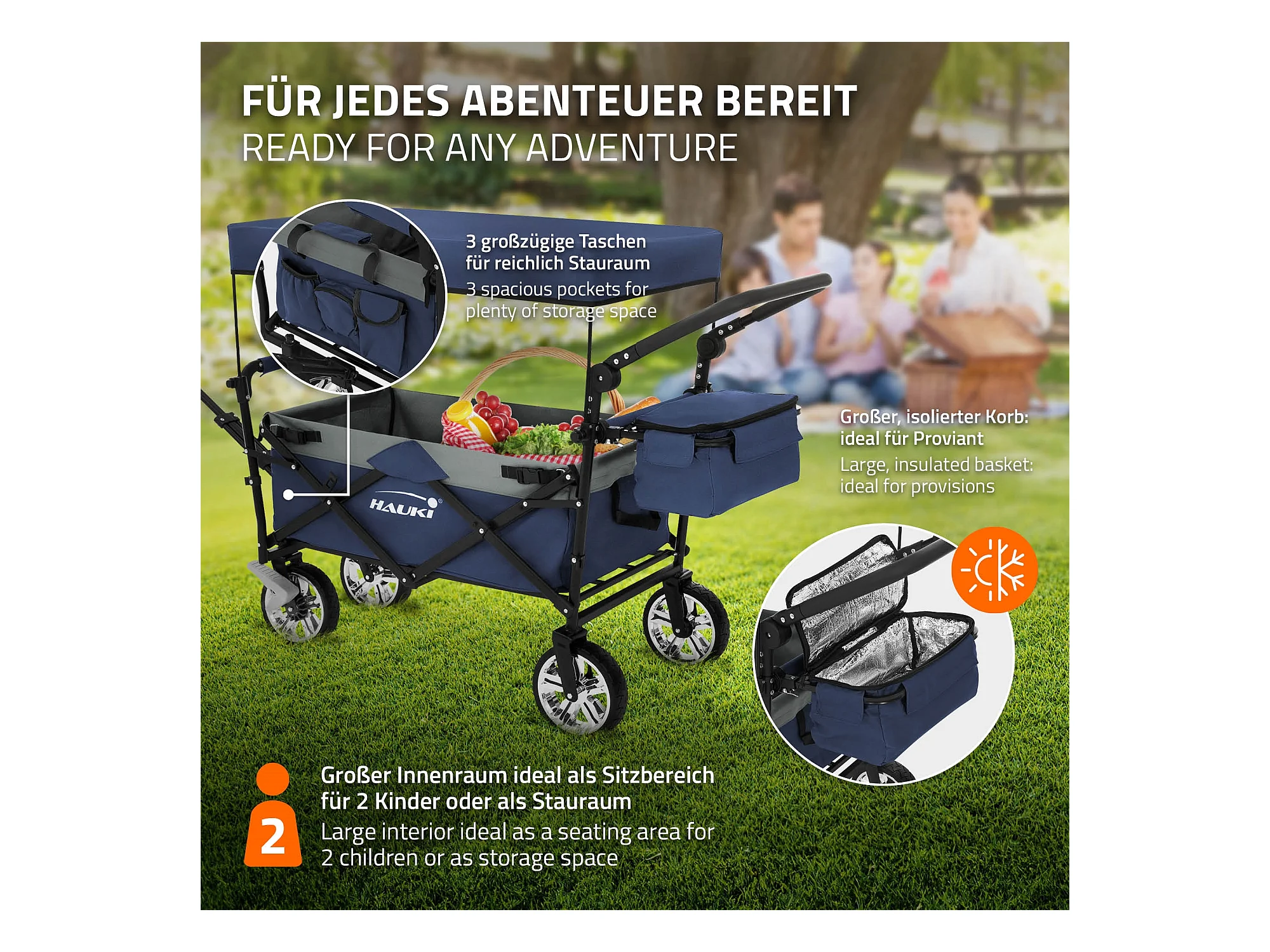 Chariot de transport pliable avec toit/sac bleu-gris pour enfants charge 120 kg