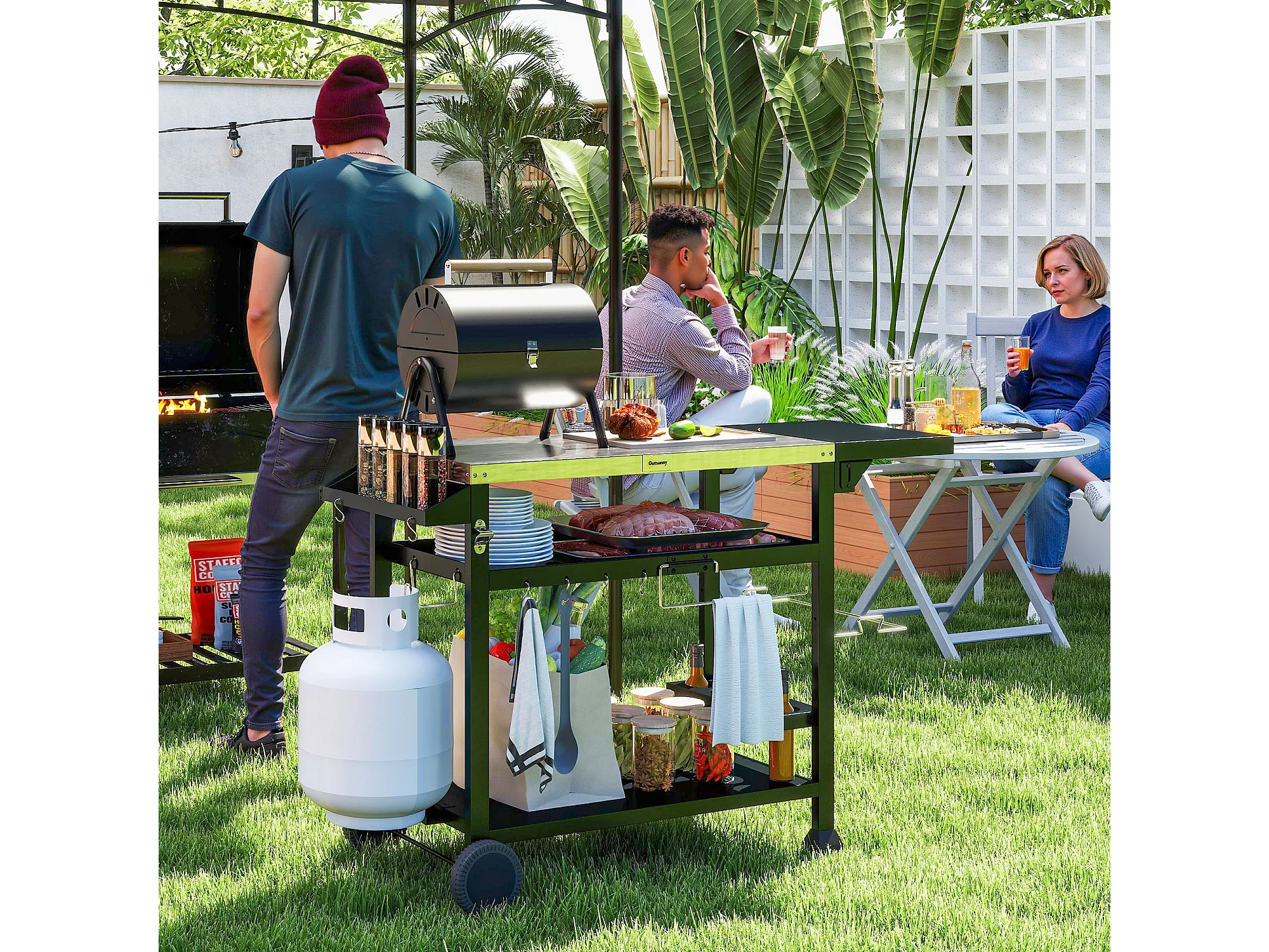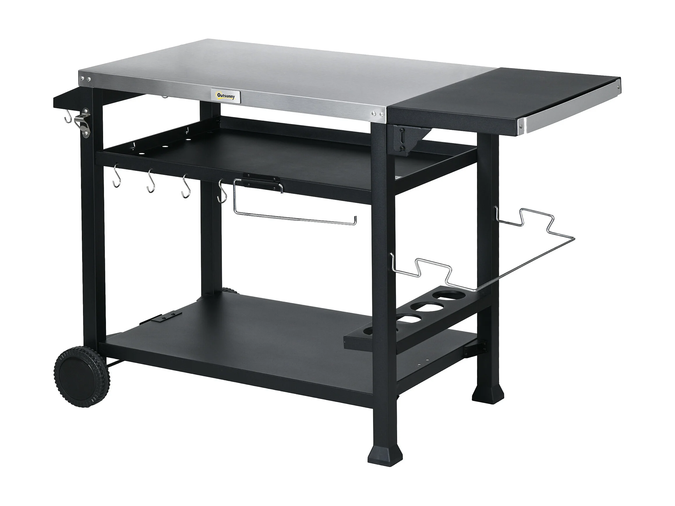 Chariot desserte barbecue plancha multi-équipement plateau acier inox