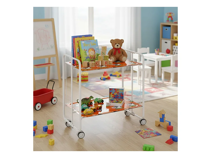 Chariot pliant à roulettes, , table pliante roulante - Structure métallique blanche, 2 niveaux en stratifié couleur Pin Vieilli- 72*66*43 cm - BAUHAUS