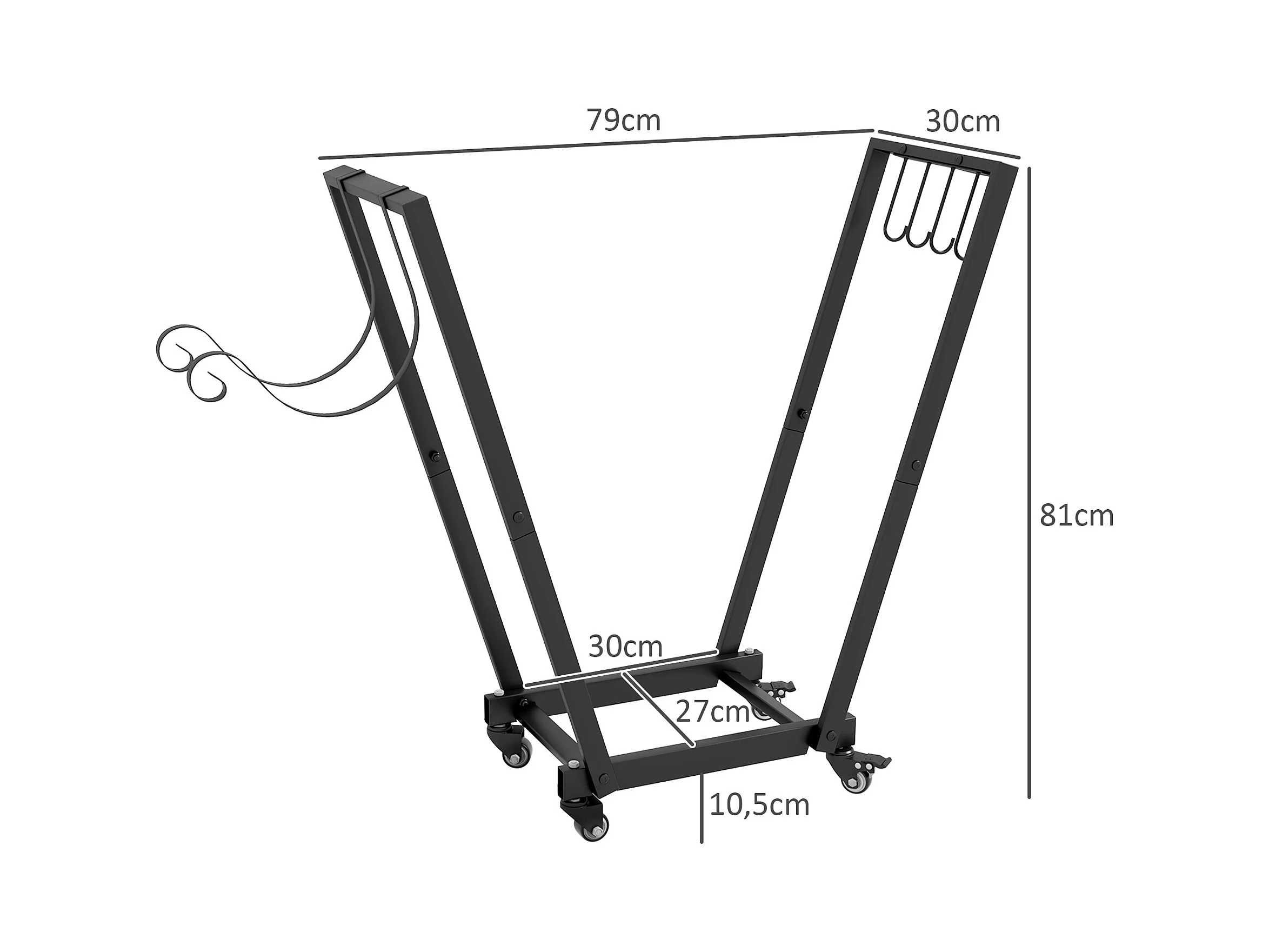 Chariot porte-bûches range-bûches 2 en 1 - 4 crochets à ustensiles, 2 crochets à bois - métal noir