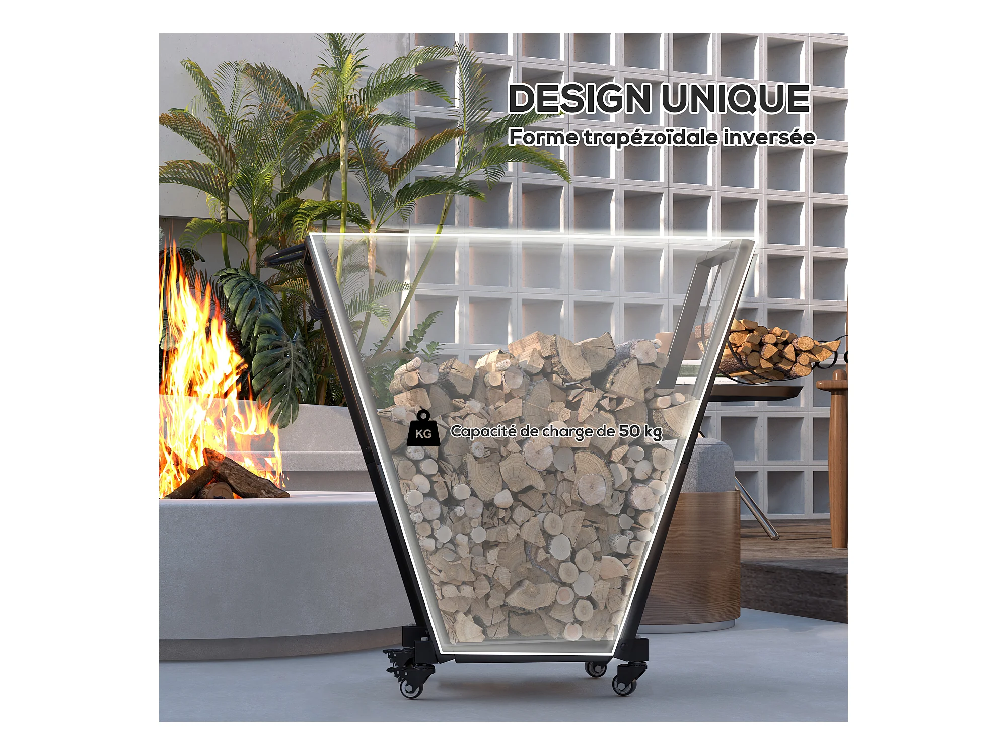 Porte bûches range bûches vertical en métal intérieur extérieur 50 x 30 x 100 cm noir