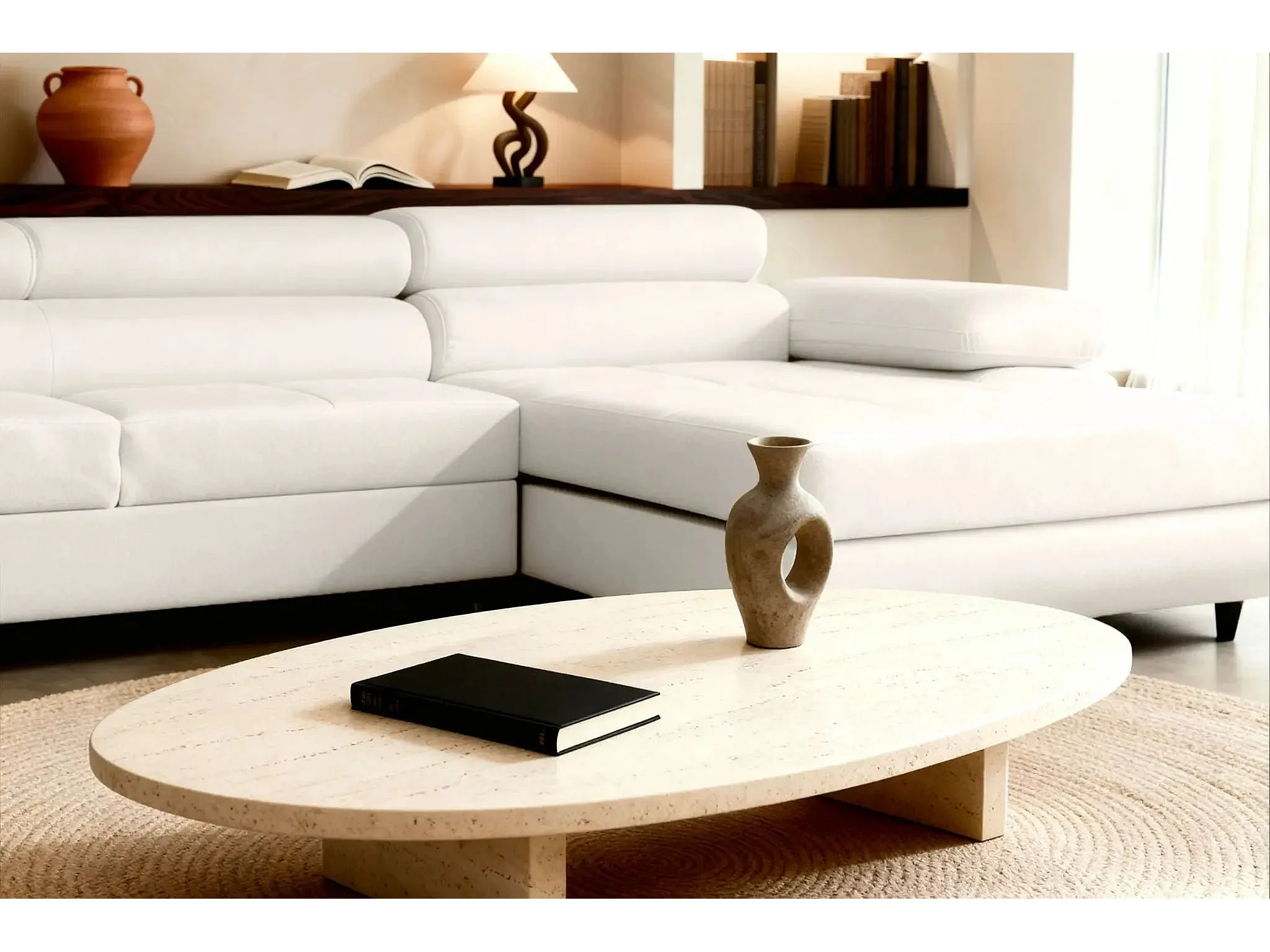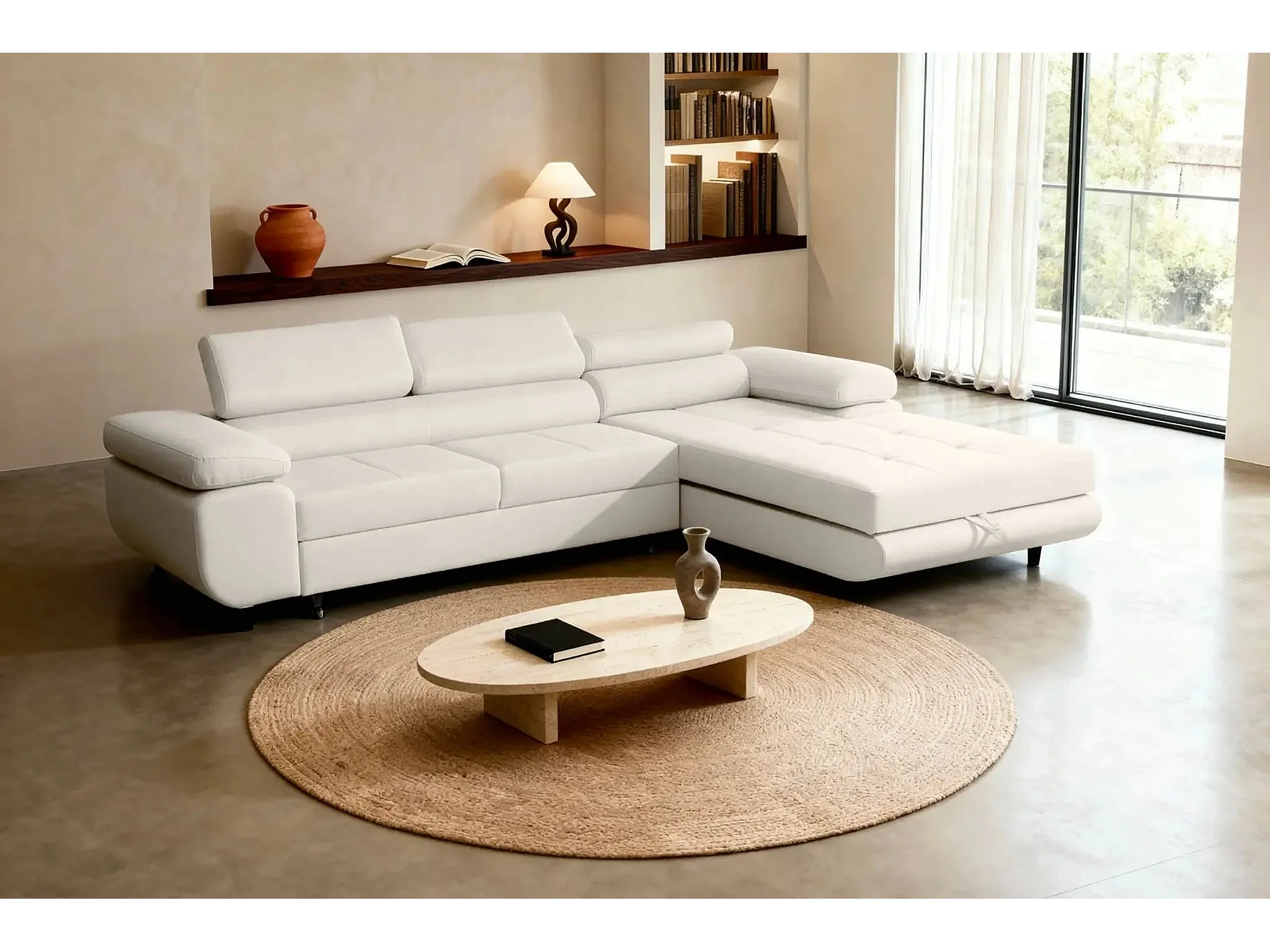 CHARLIE - Canapé d'angle convertible tissu chiné 4 places - Beige - Gauche