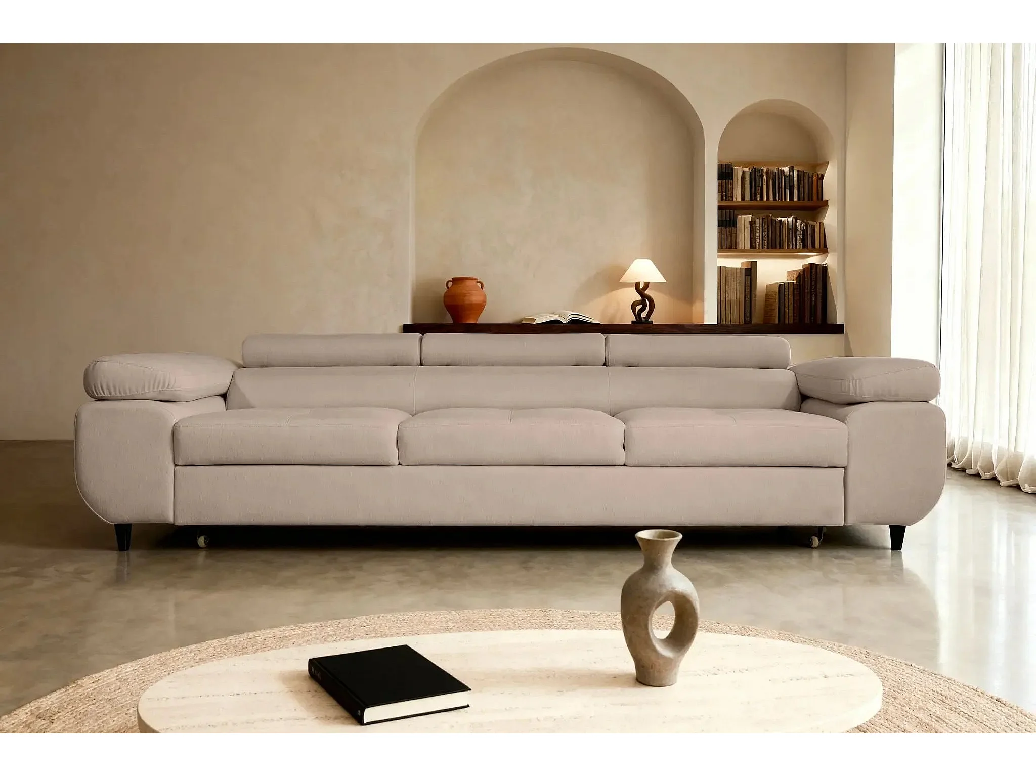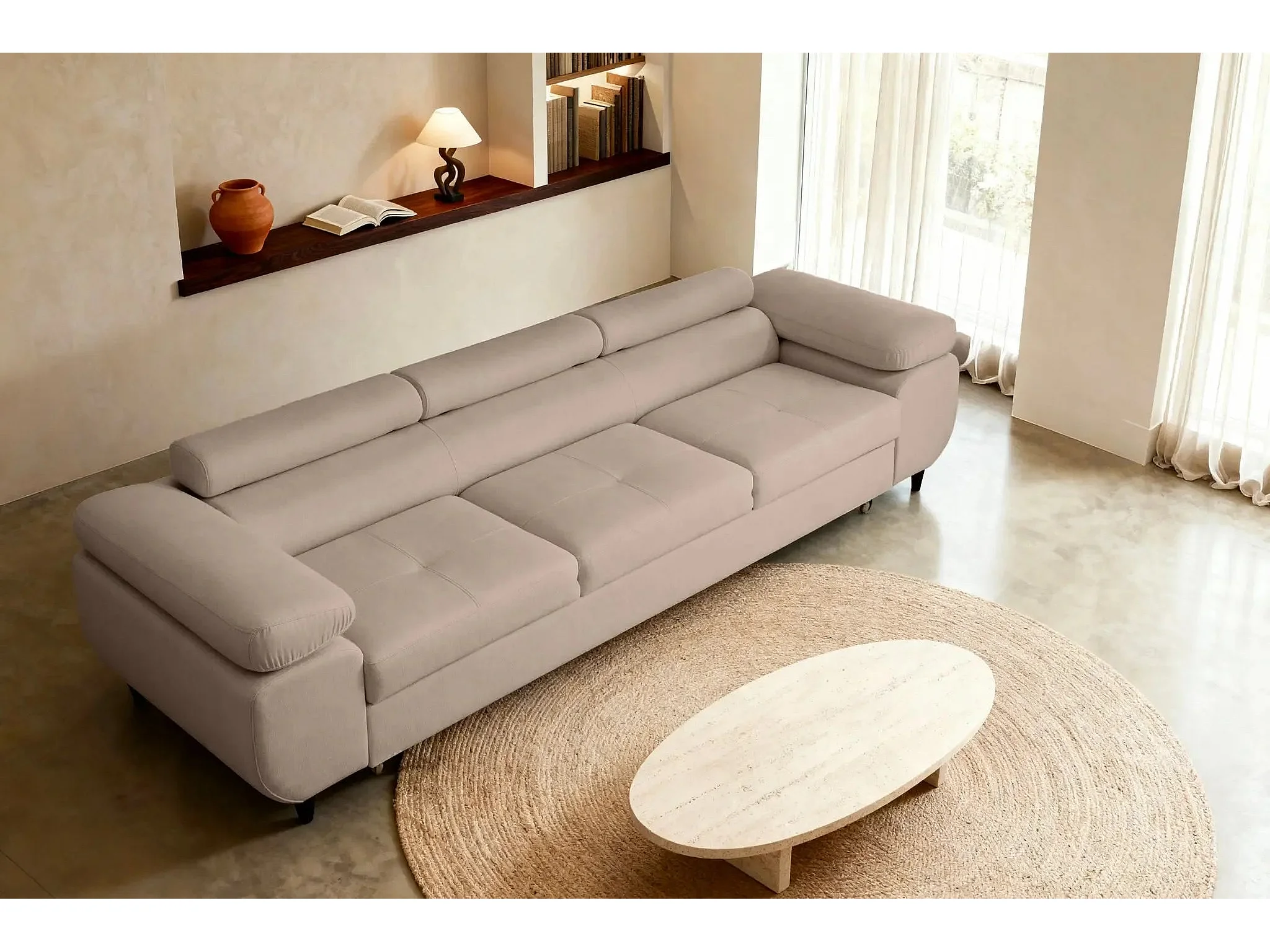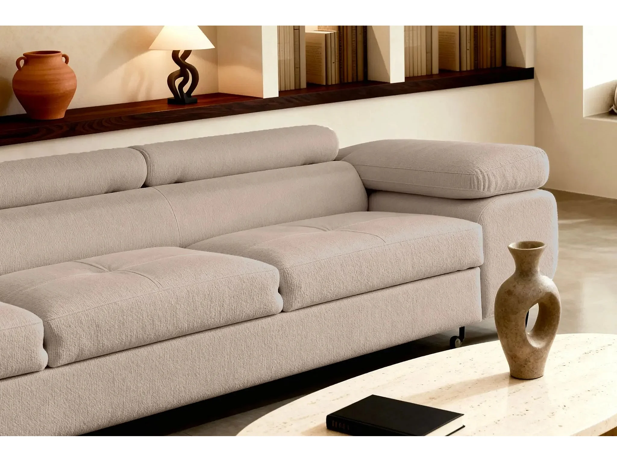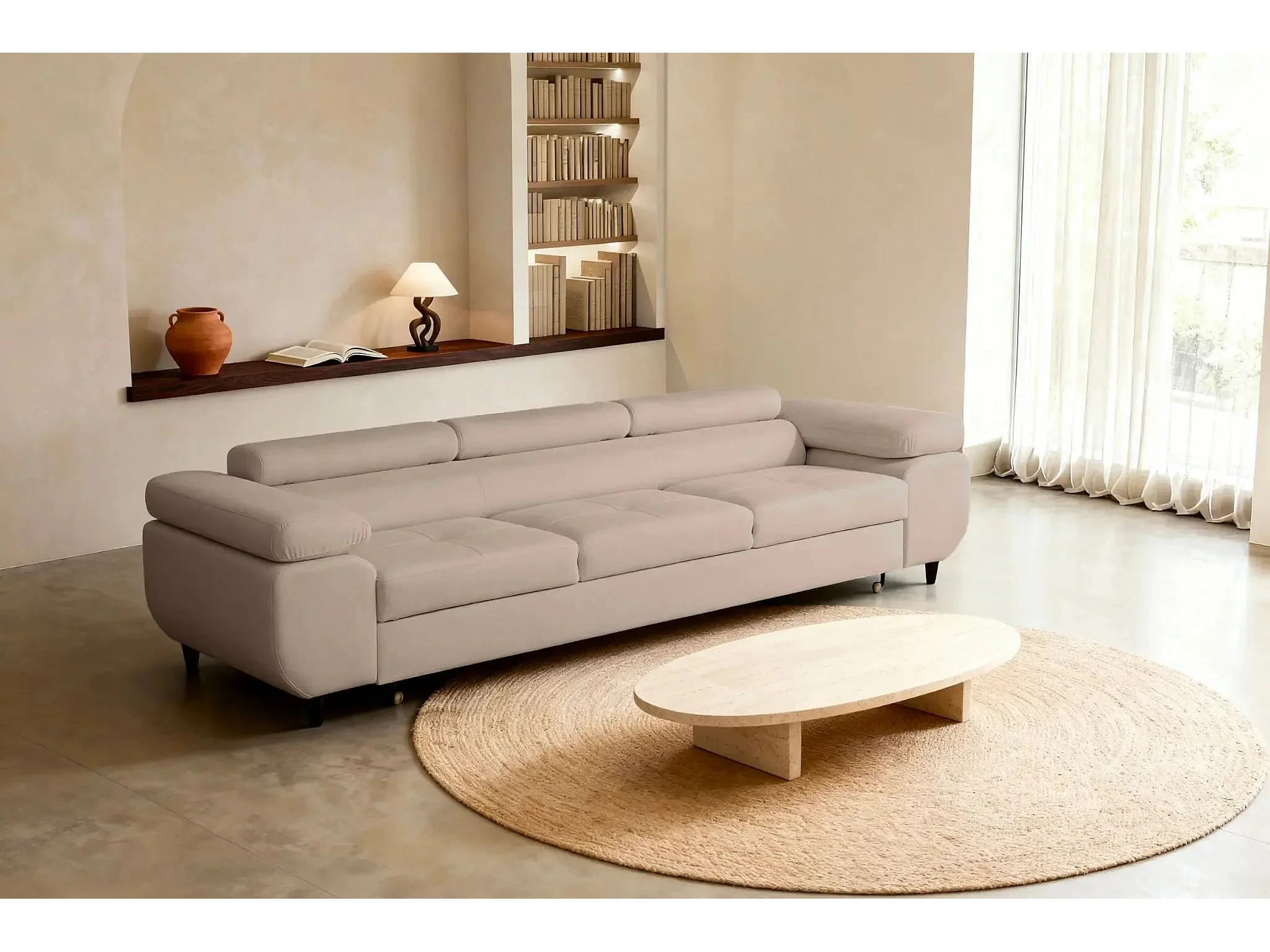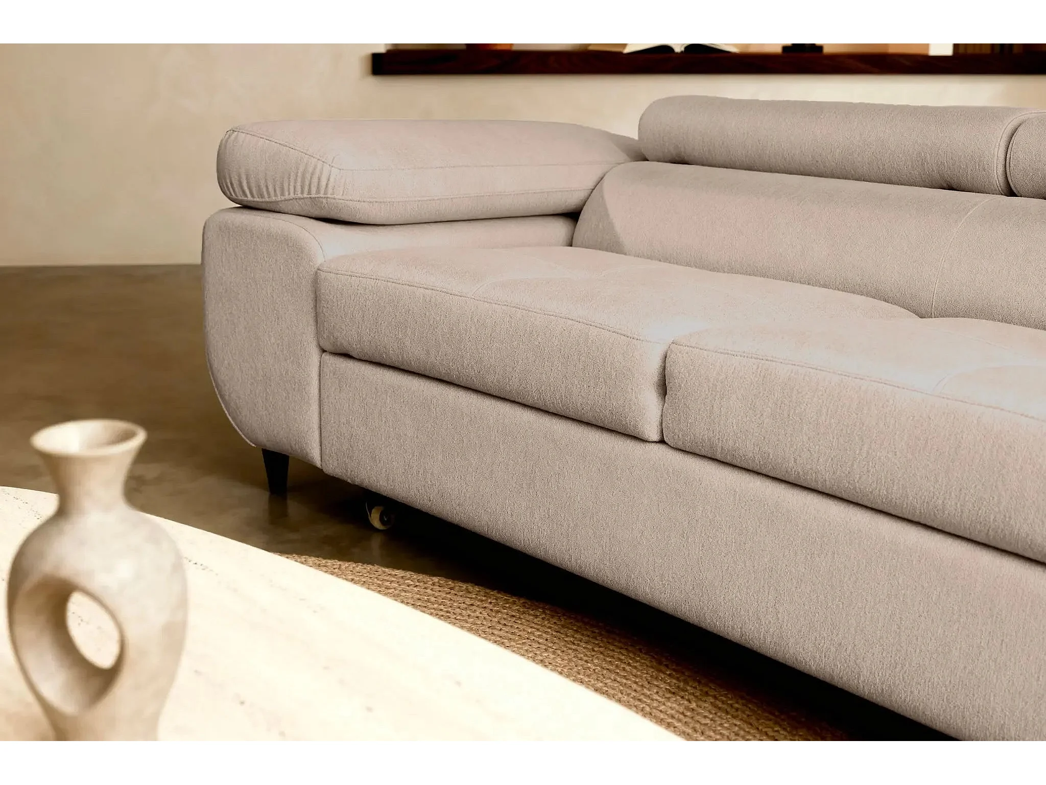 CHARLIE - Canapé droit convertible tissu chiné 3 places - Café