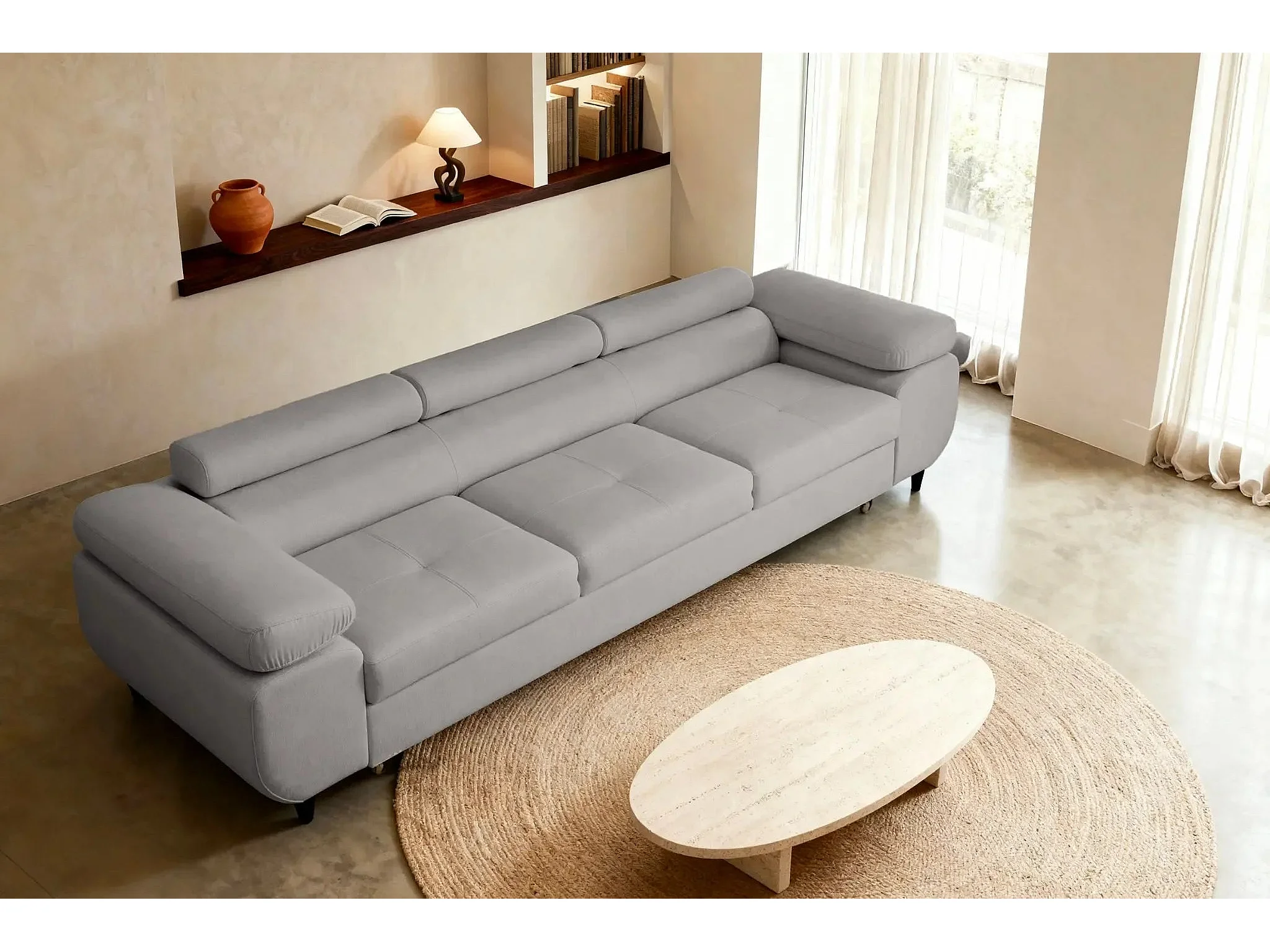 CHARLIE - Canapé droit convertible tissu chiné 3 places - Gris clair