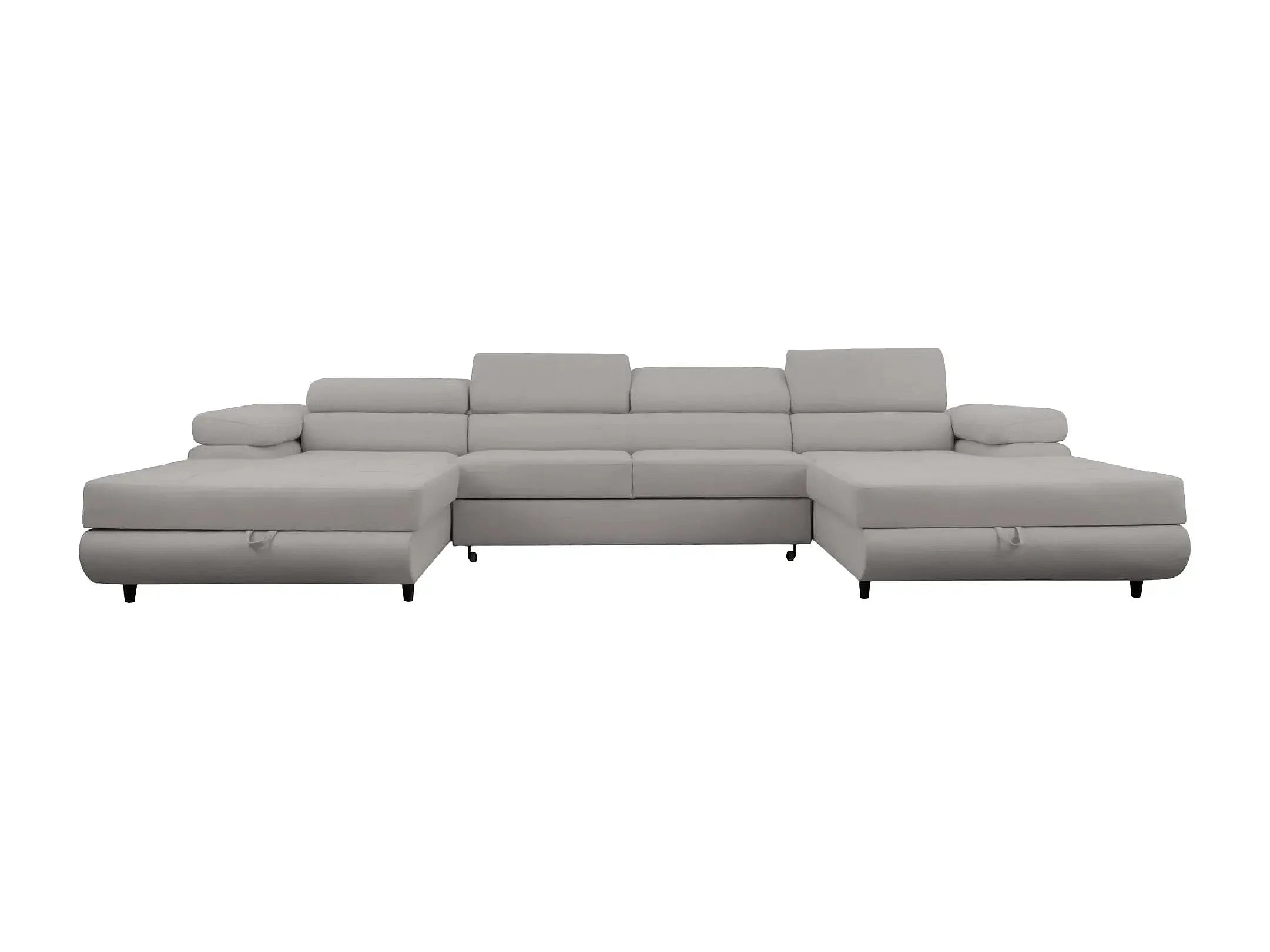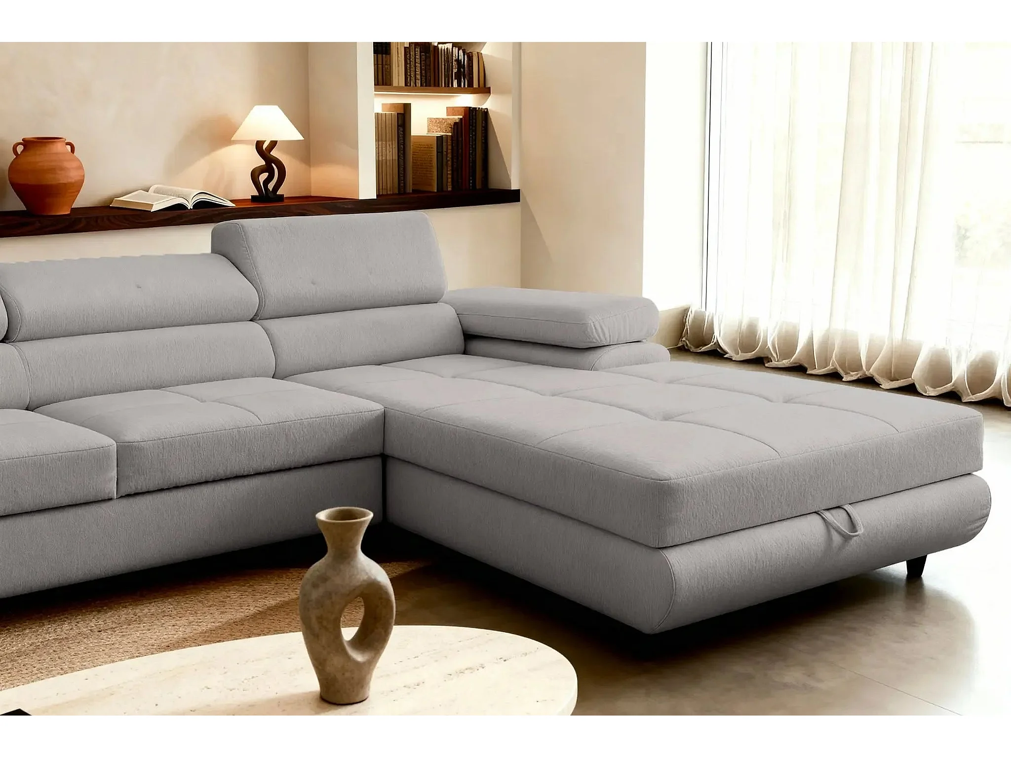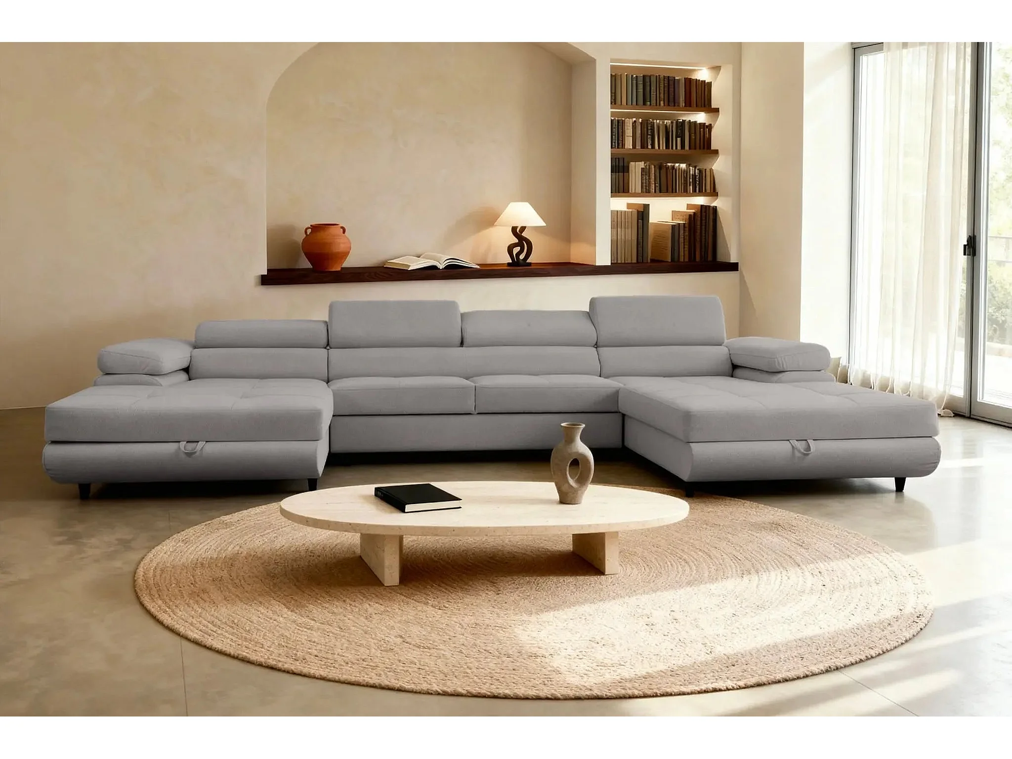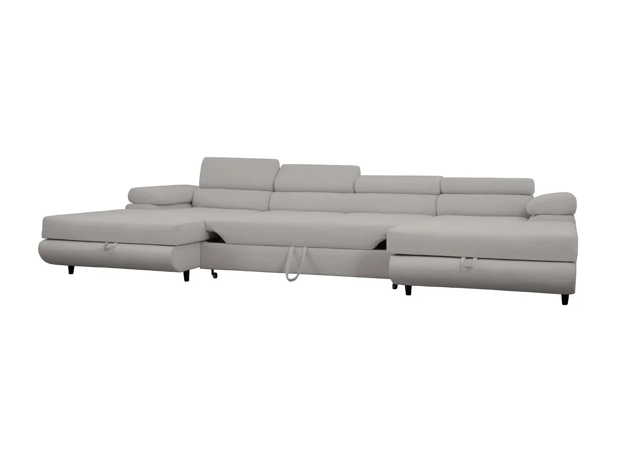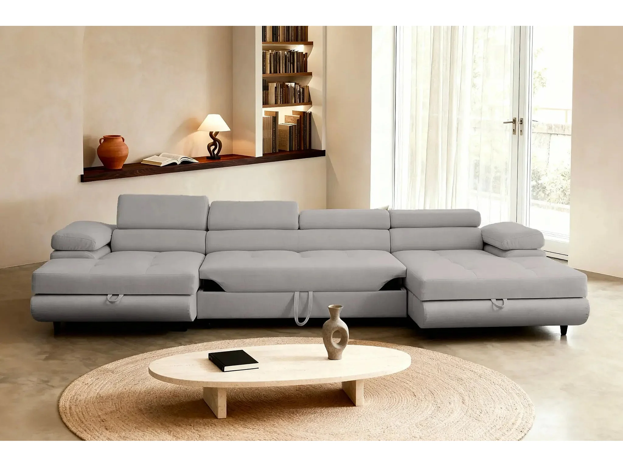 CHARLIE - Canapé panoramique convertible tissu chiné 5 places - Gris clair