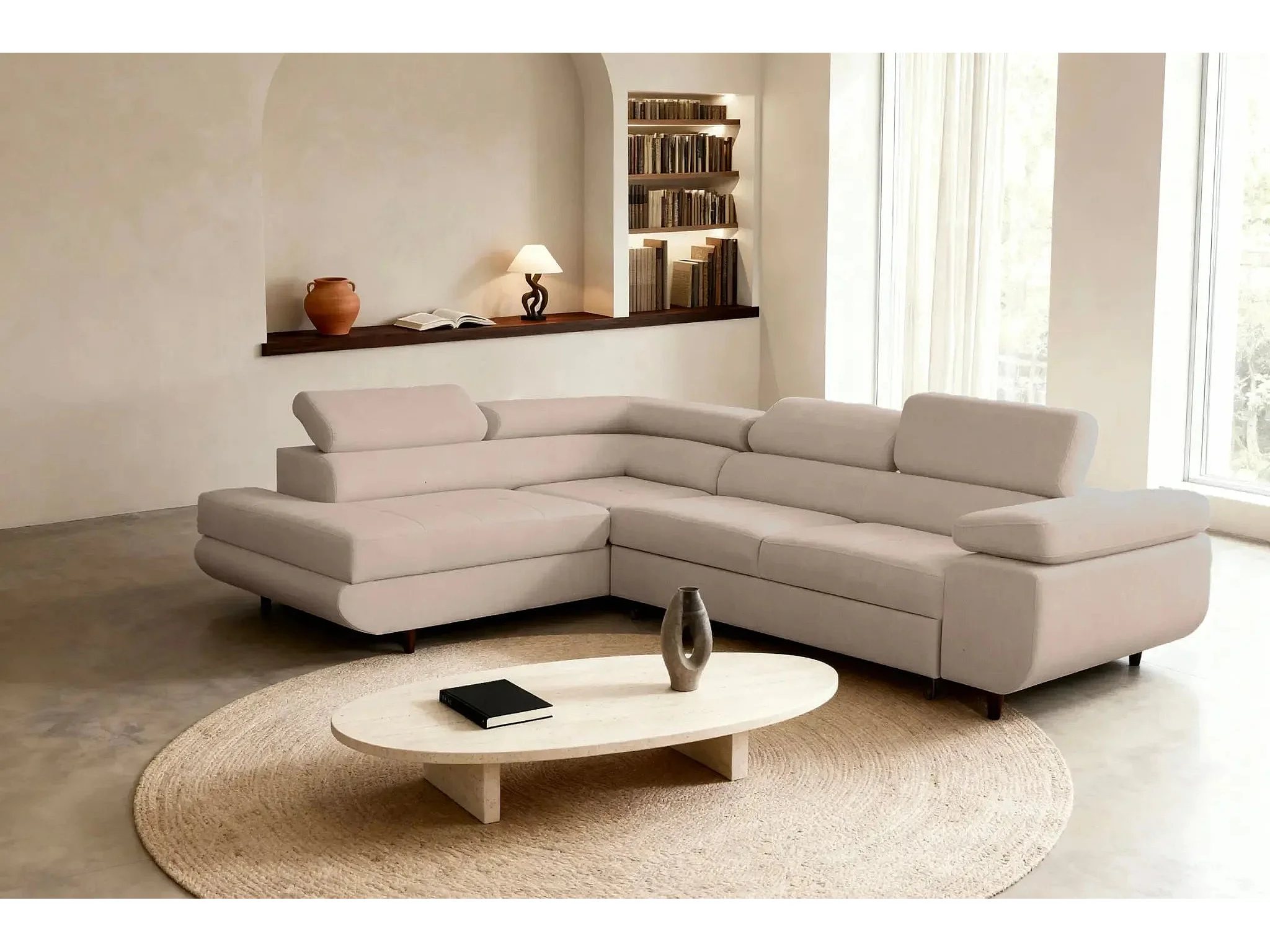 CHARLIE L - Canapé d'angle convertible tissu lisse 4 places - Café - Gauche