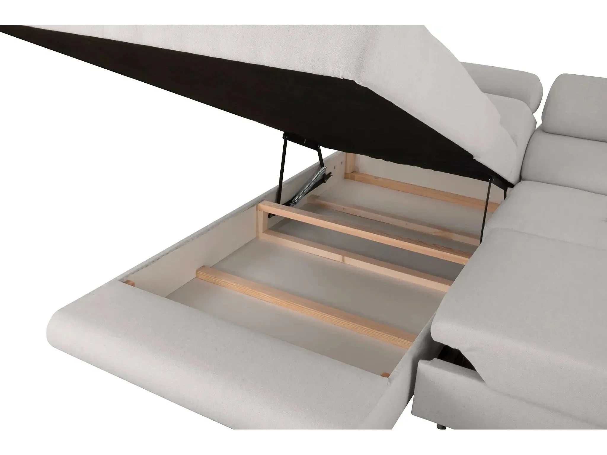 CHARLIE L - Canapé d'angle convertible tissu lisse 4 places - Gris clair - Droit