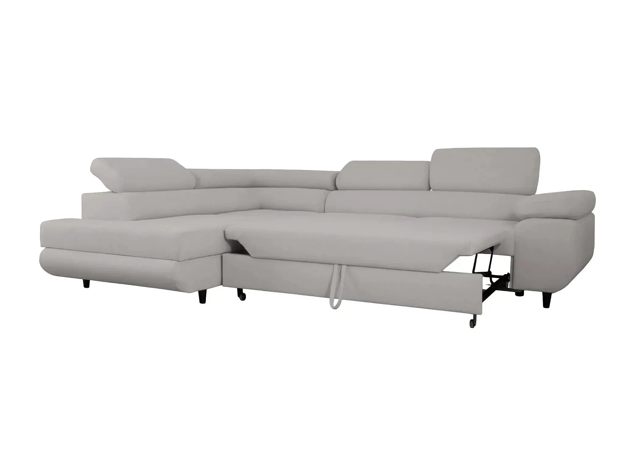 CHARLIE L - Canapé d'angle convertible tissu lisse 4 places - Gris clair - Gauche