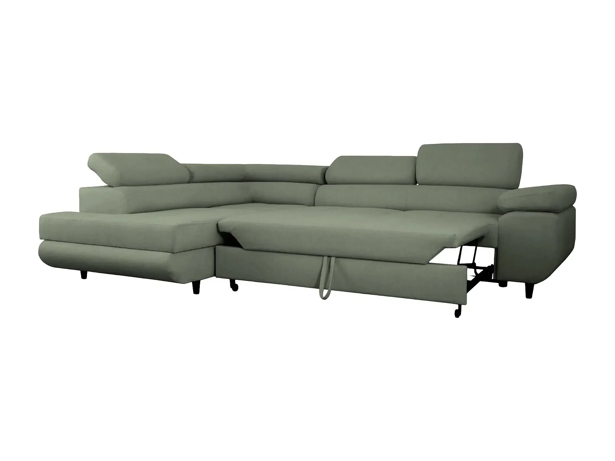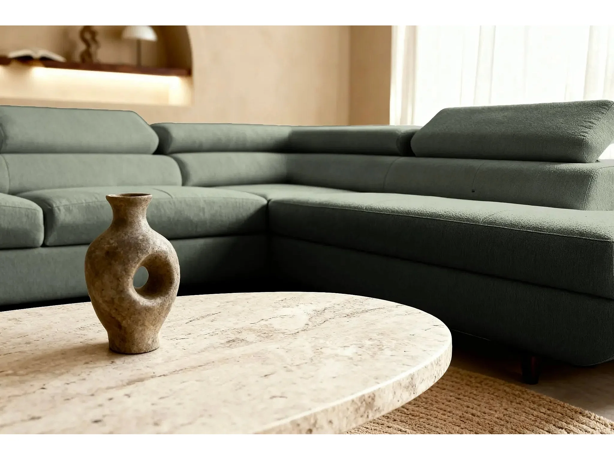 CHARLIE L - Canapé d'angle convertible tissu lisse 4 places - Vert - Droit