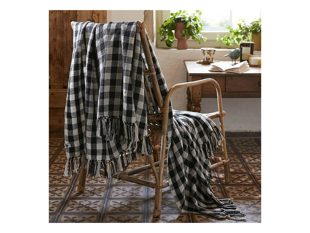 Couverture coton à carreaux 160x210 Noir