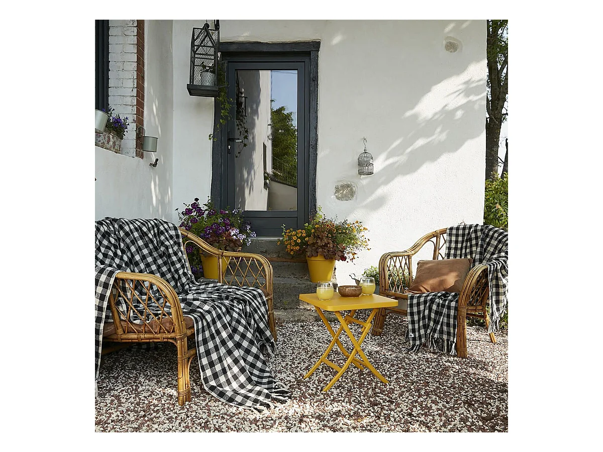 CHARLOT - Plaid à Franges 100% Recyclé Tissage Pieds de poule 130x160cm