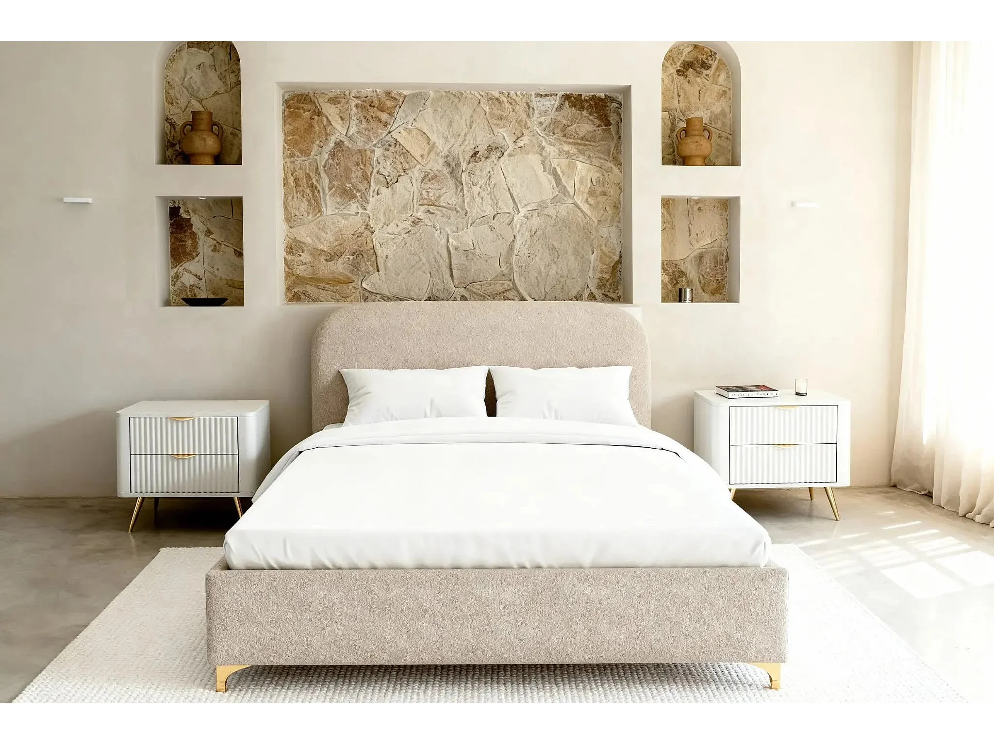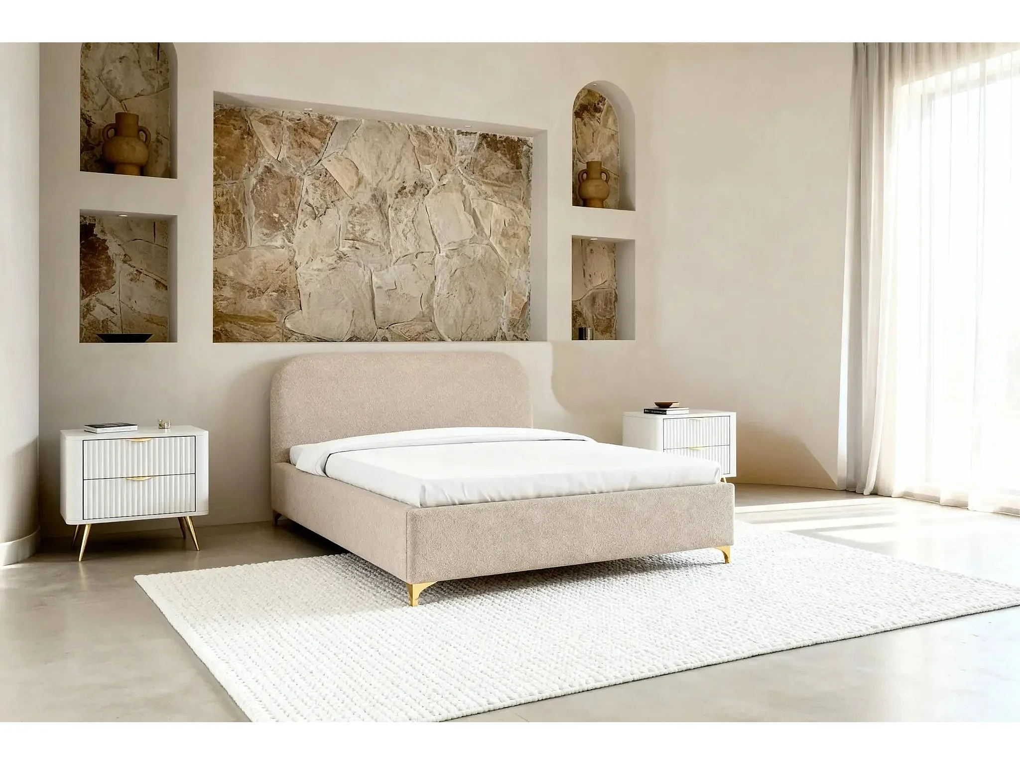 CHARLOTTE - Lit coffre tissu chenille 140x200cm - Beige