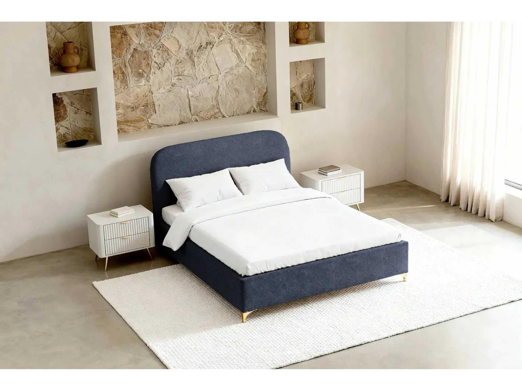 CHARLOTTE - Lit coffre tissu chenille 140x200cm - Bleu