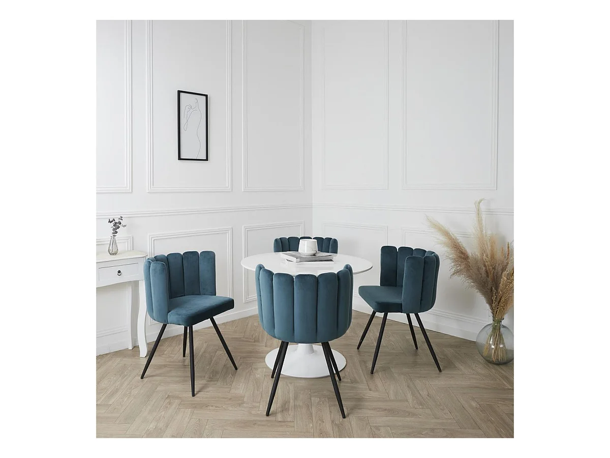 CHARLOTTE - Lot de 4 Chaises Velours Bleu