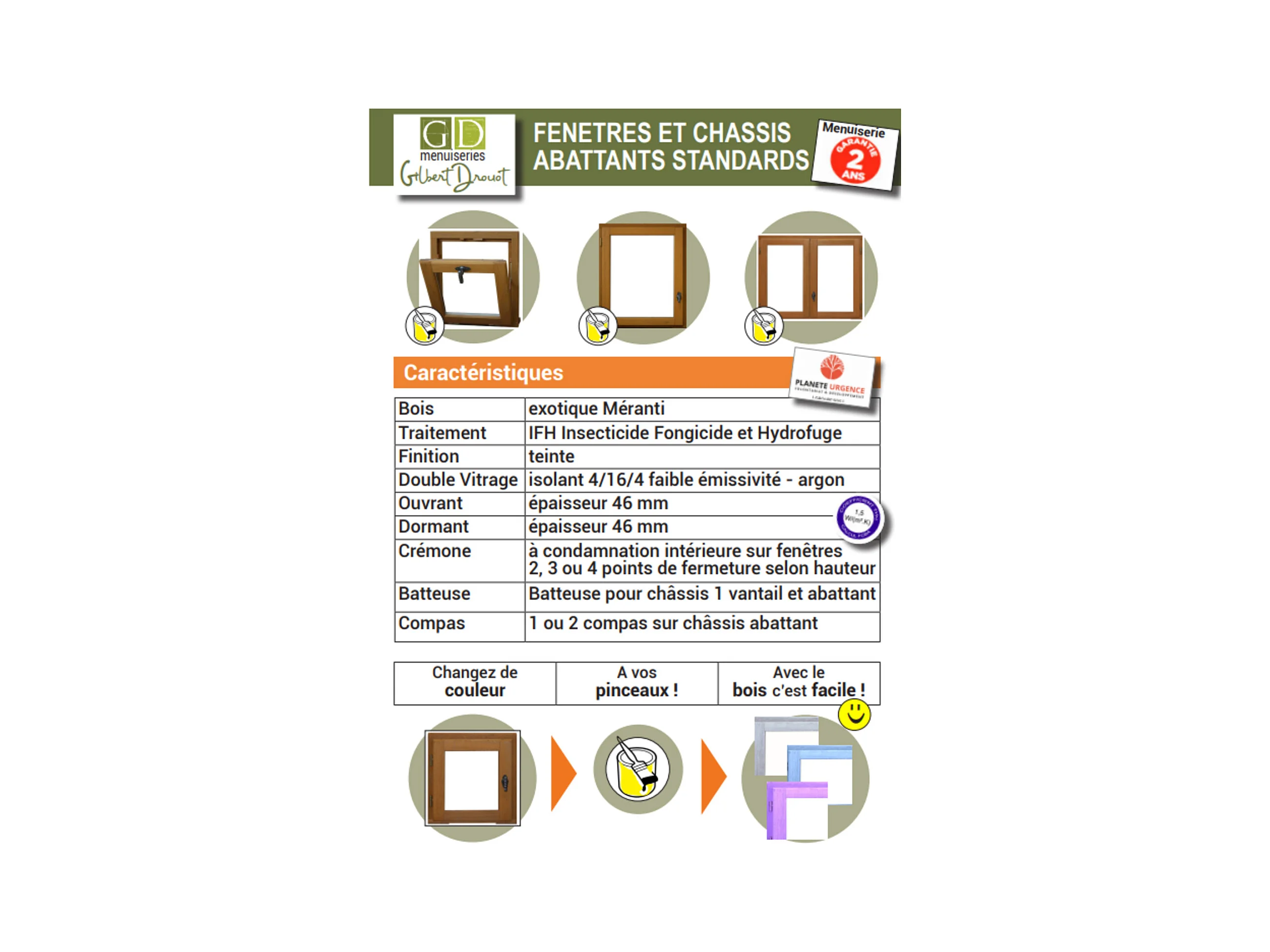 Chassis Abattant En Bois H60 X L120 Cotes Tableau + Poignee (ref 010220f9) Gd Menuiseries