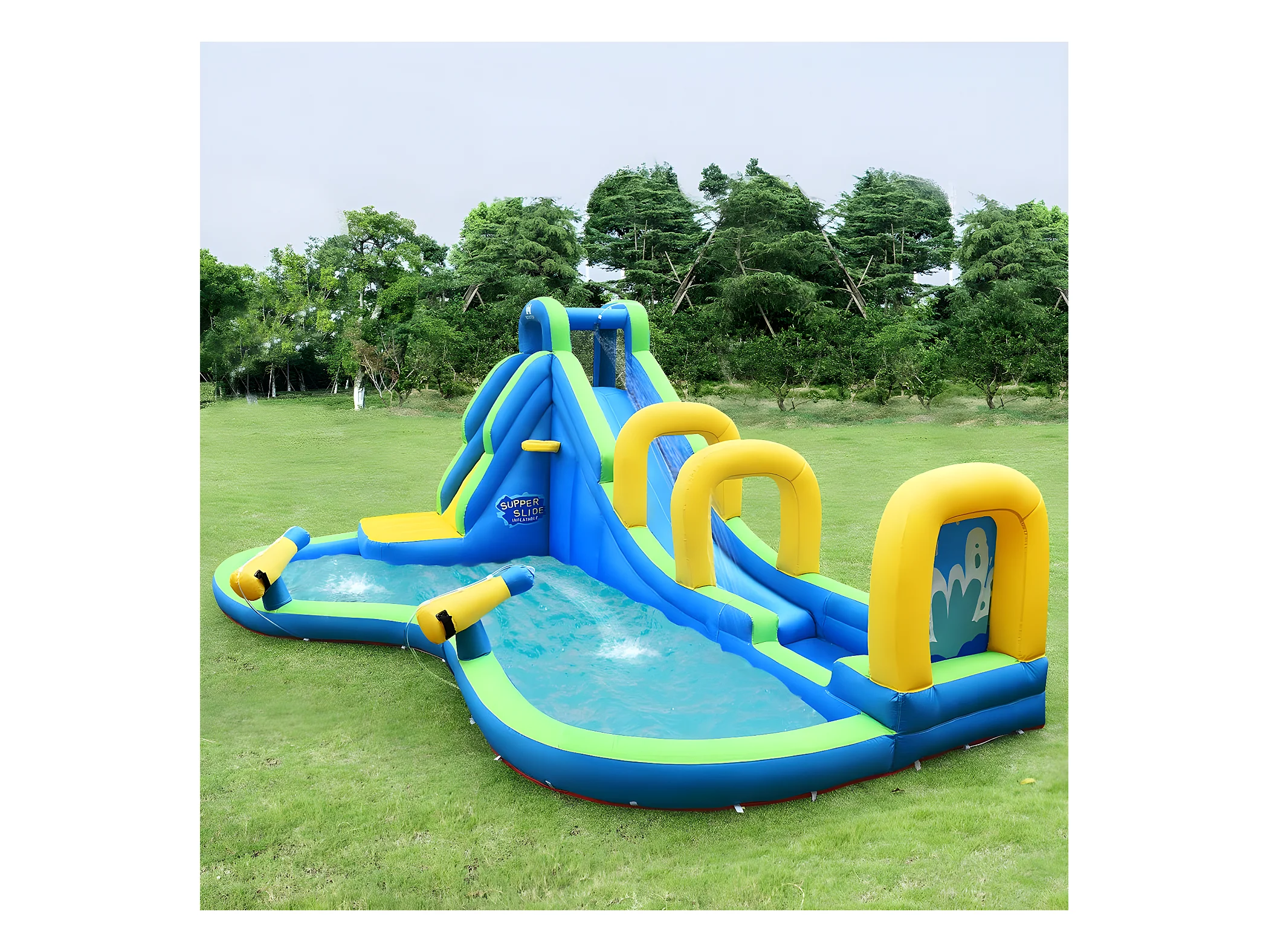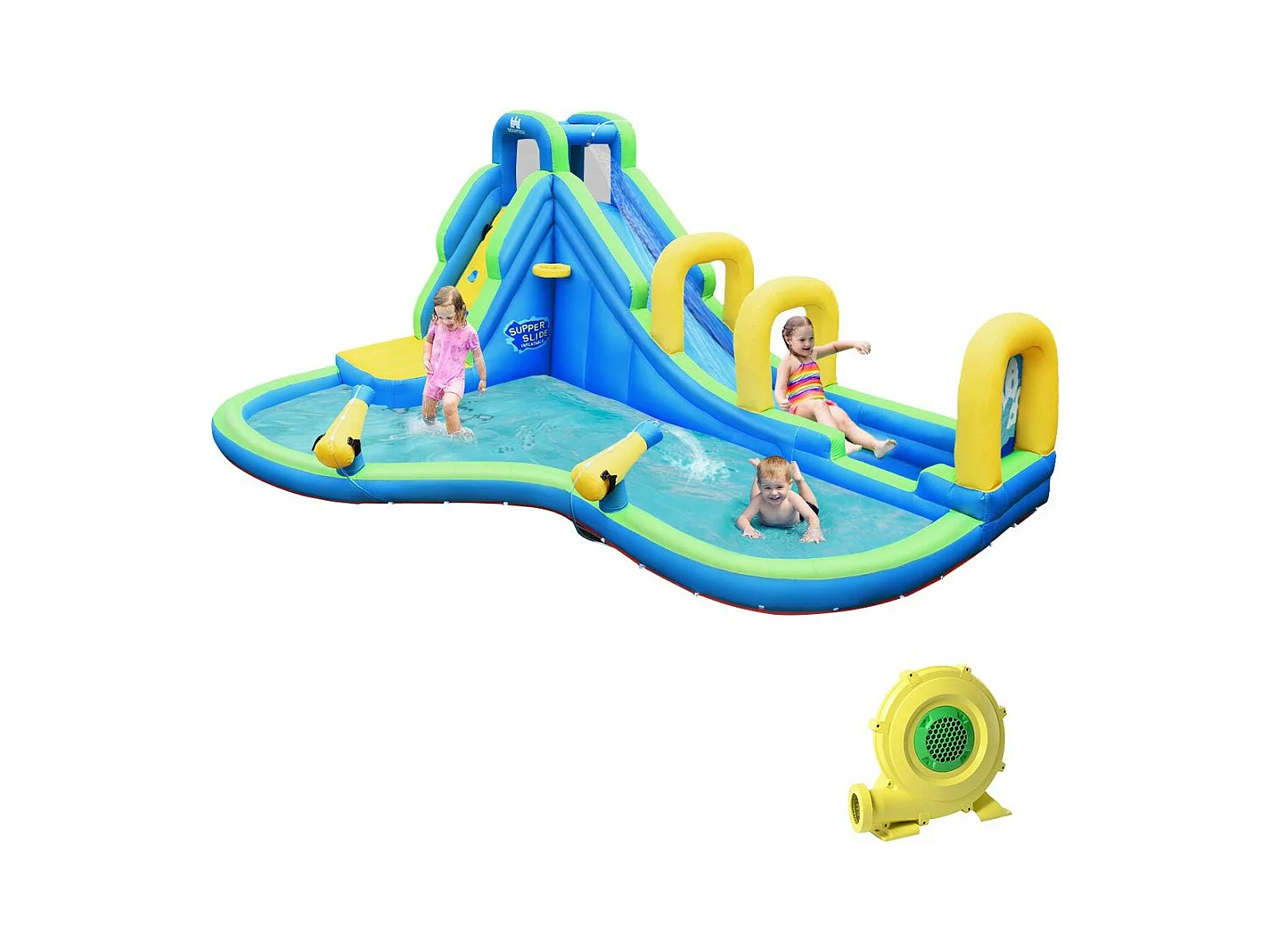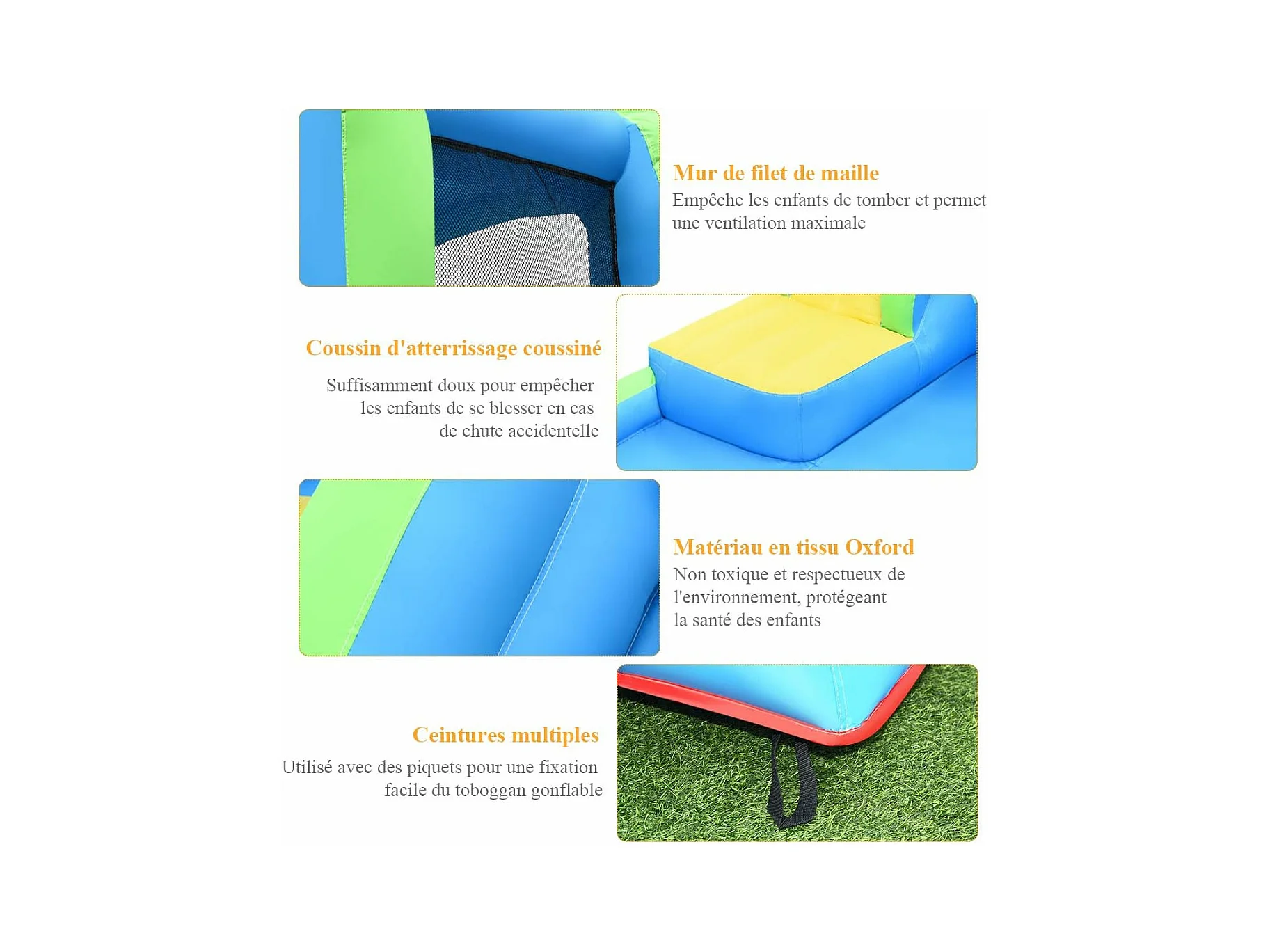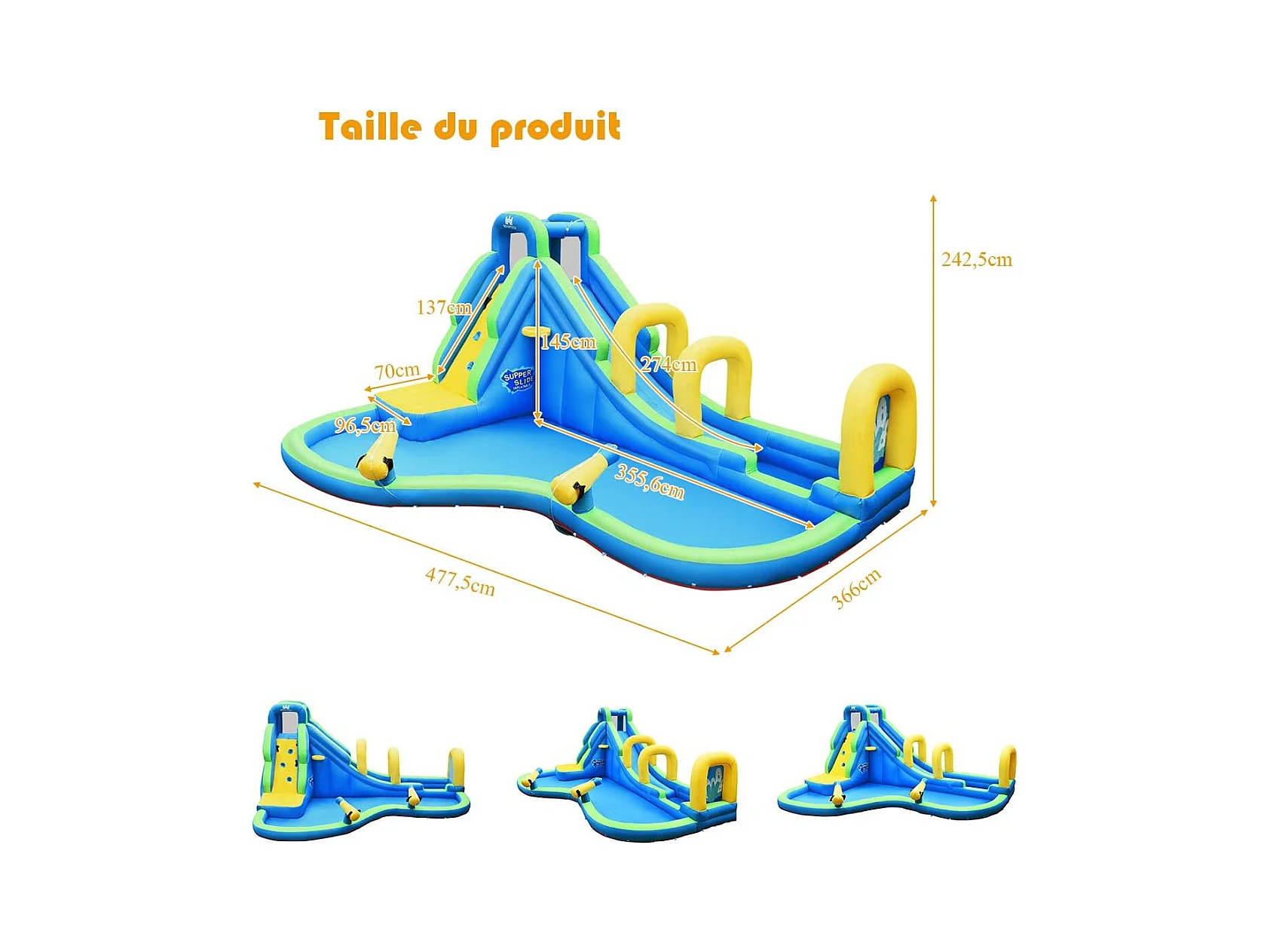Château Gonflable avec Toboggan Aquatique/Pistolet de l'eau Fait en Plastique et vinyle-Convient pour 4 Enfants de 4 à 12 Ans-Charge Max.120 kg (avec Gonfleur)