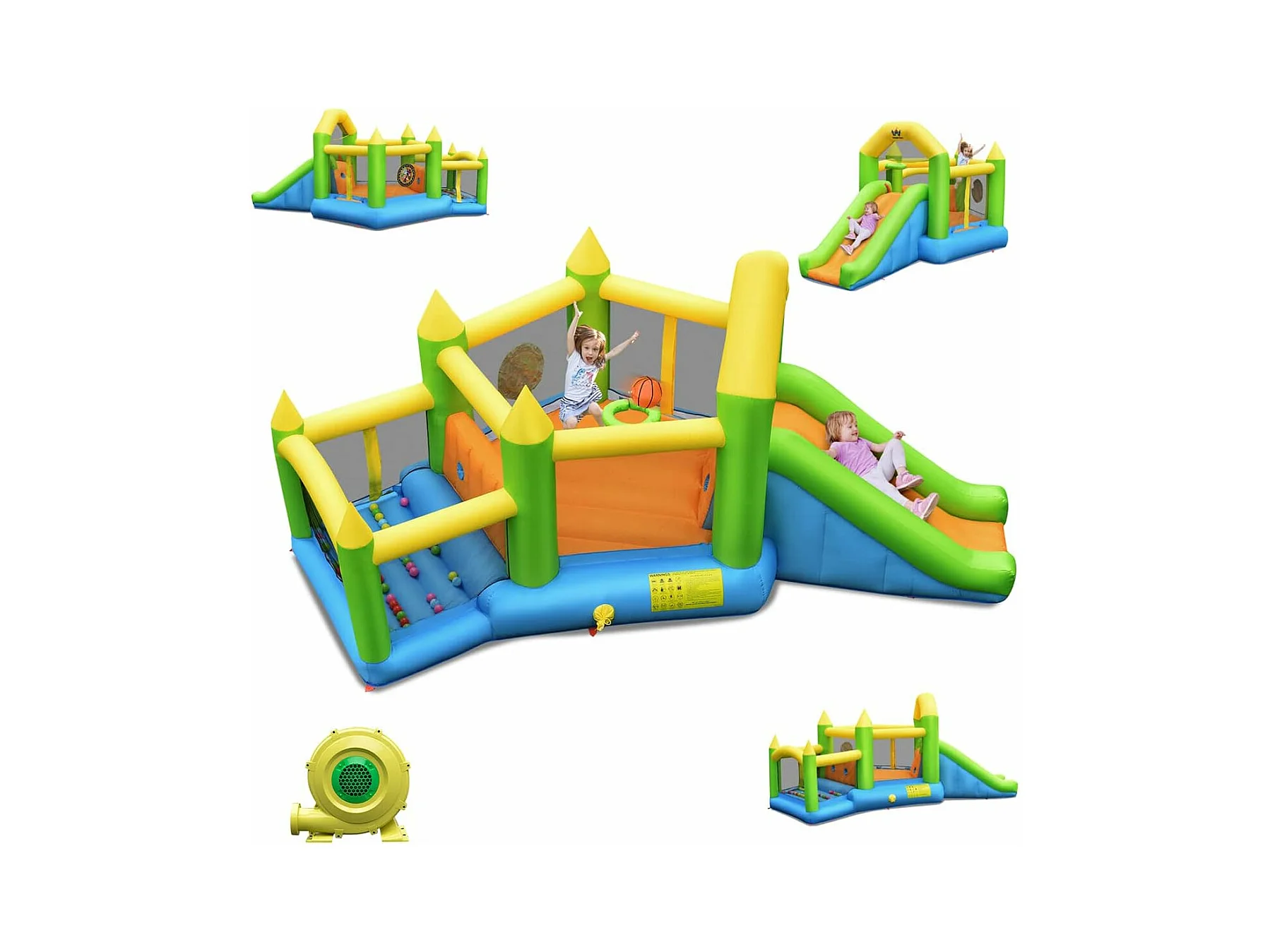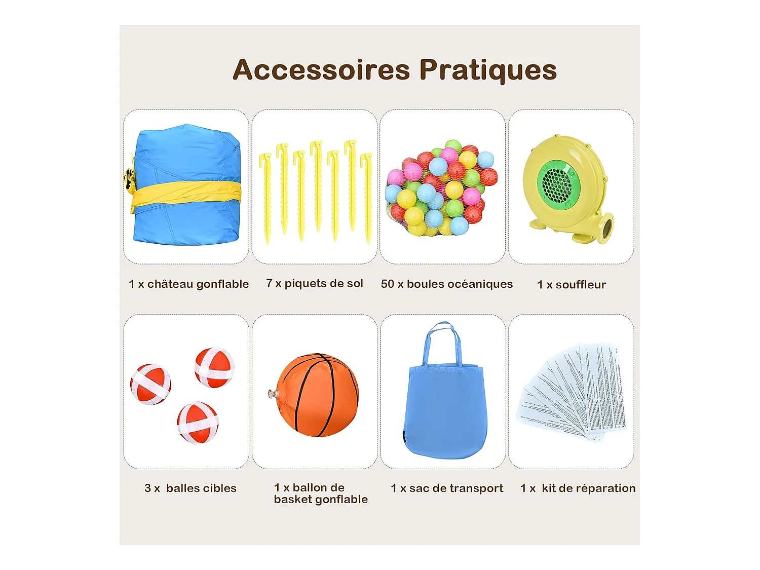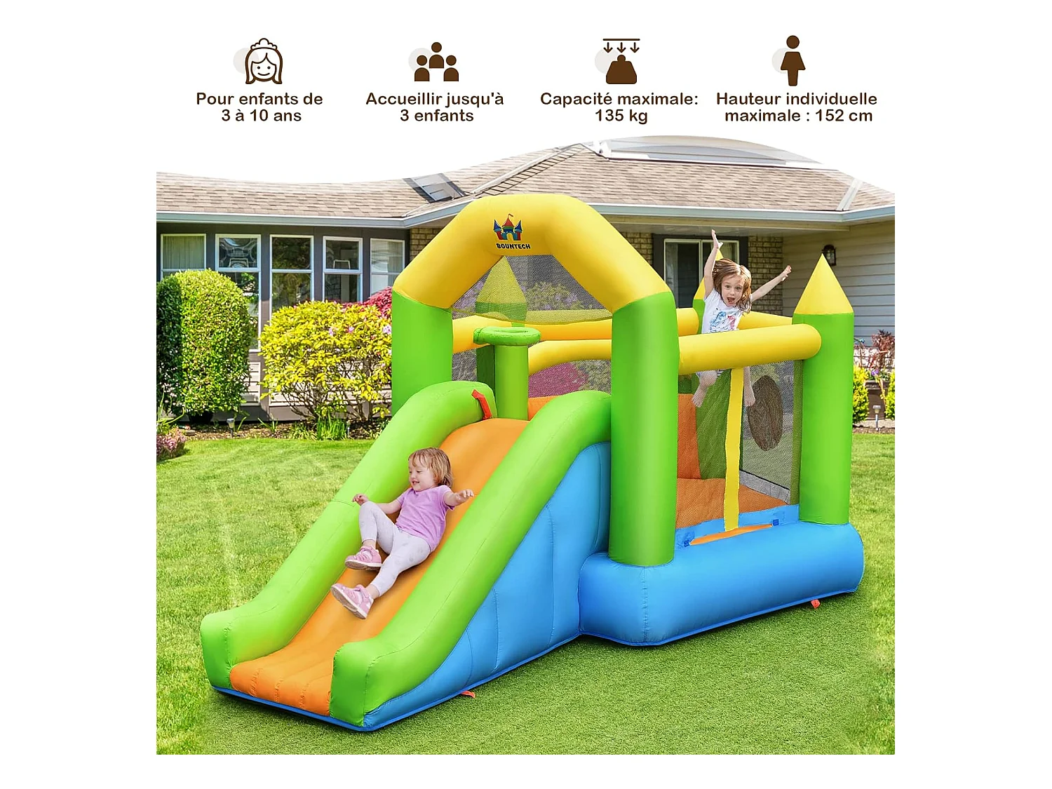 Château gonflable en forme de Pentagone avec toboggan, pour 3 enfants de 3-10 ans (avec souffleur 450W)