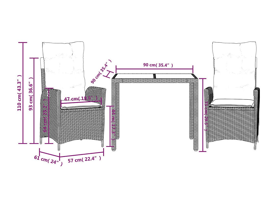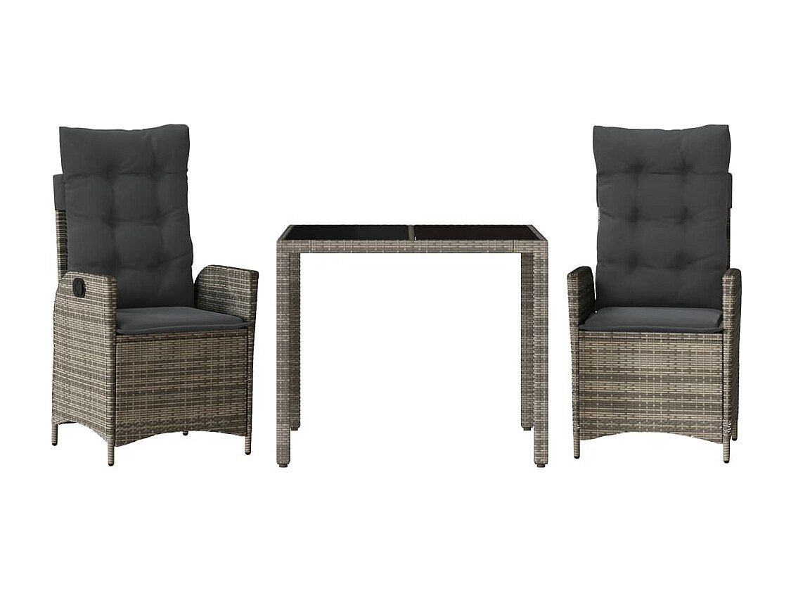 Chattanooga Ensemble à manger de jardin 3 pcs coussins gris résine tressée