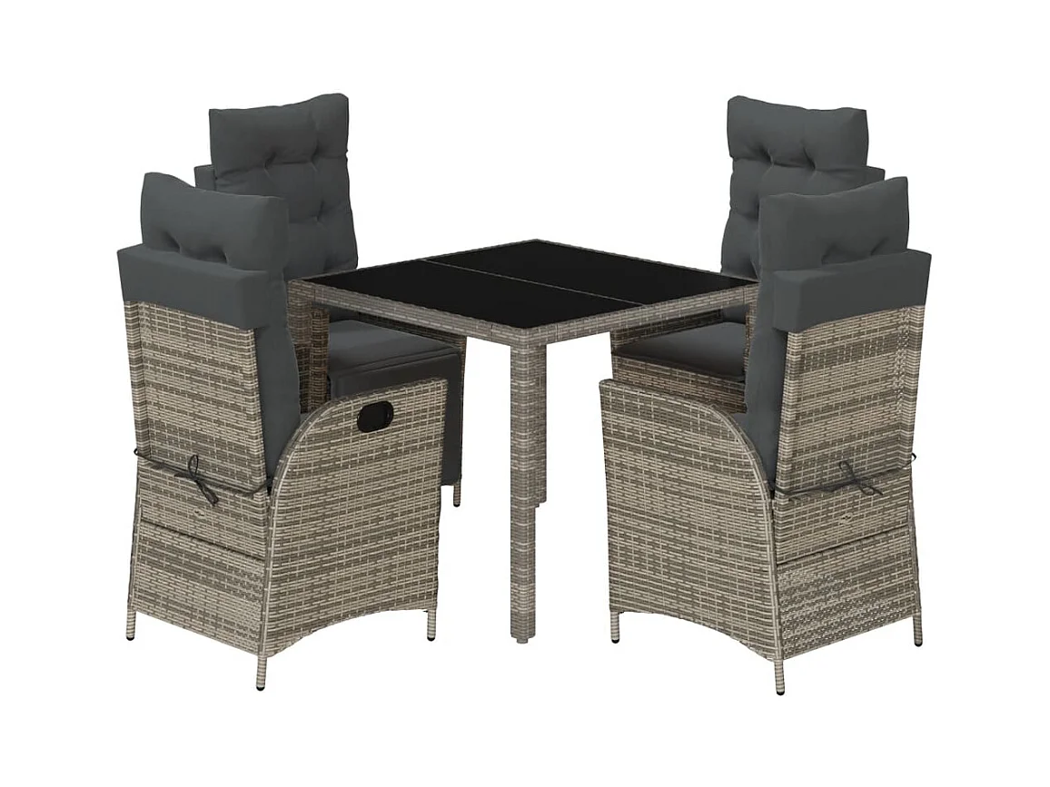 Chattanooga Ensemble à manger de jardin 5 pcs coussins gris résine tressée