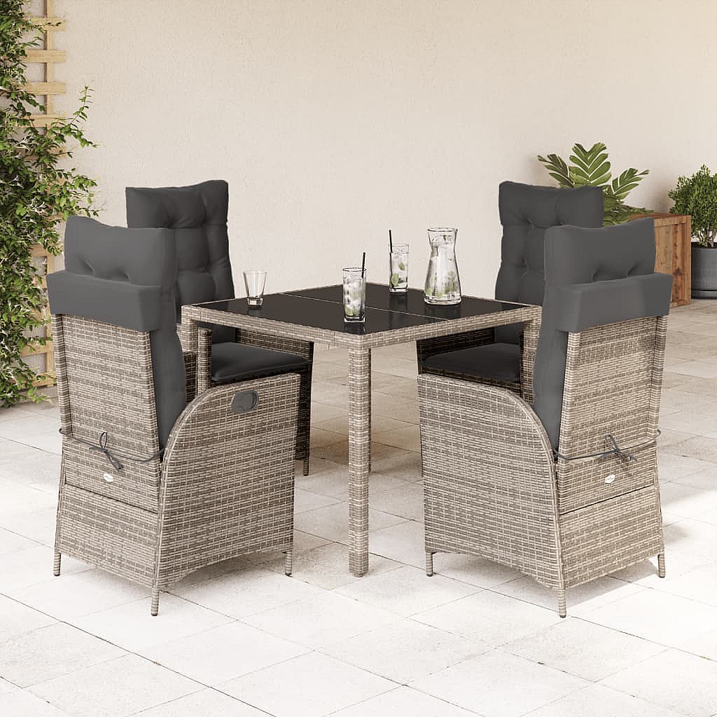 Chattanooga Ensemble à manger de jardin 5 pcs coussins gris résine tressée