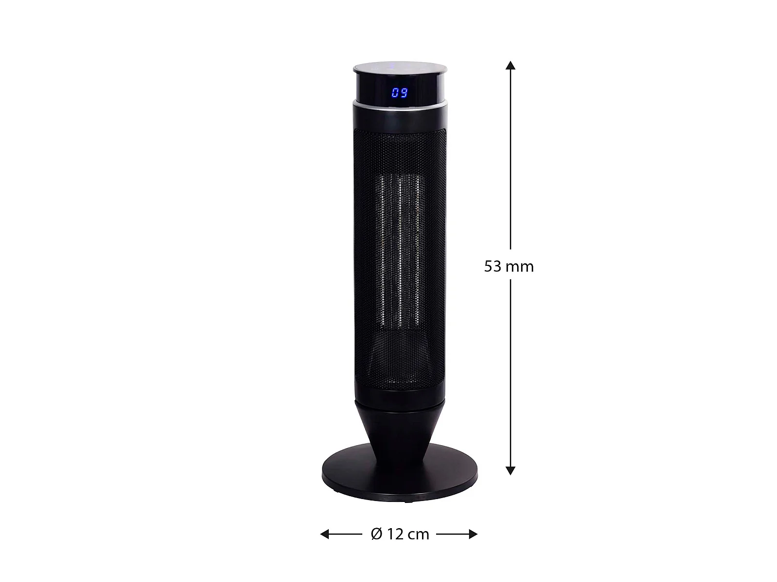 Chauffage Céramique Pivotant 2000W Kekai Tour Swing Black 12x12x53 cm Usage Intérieur avec Télécommande Incluse