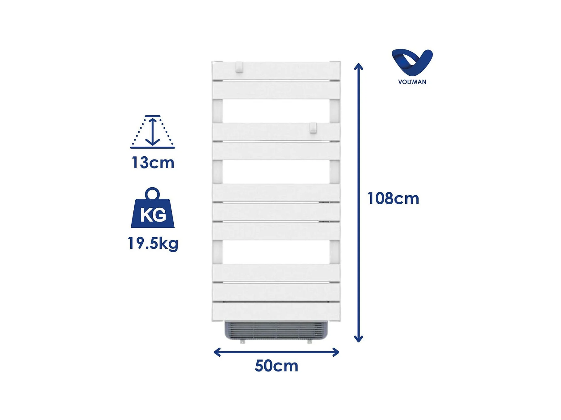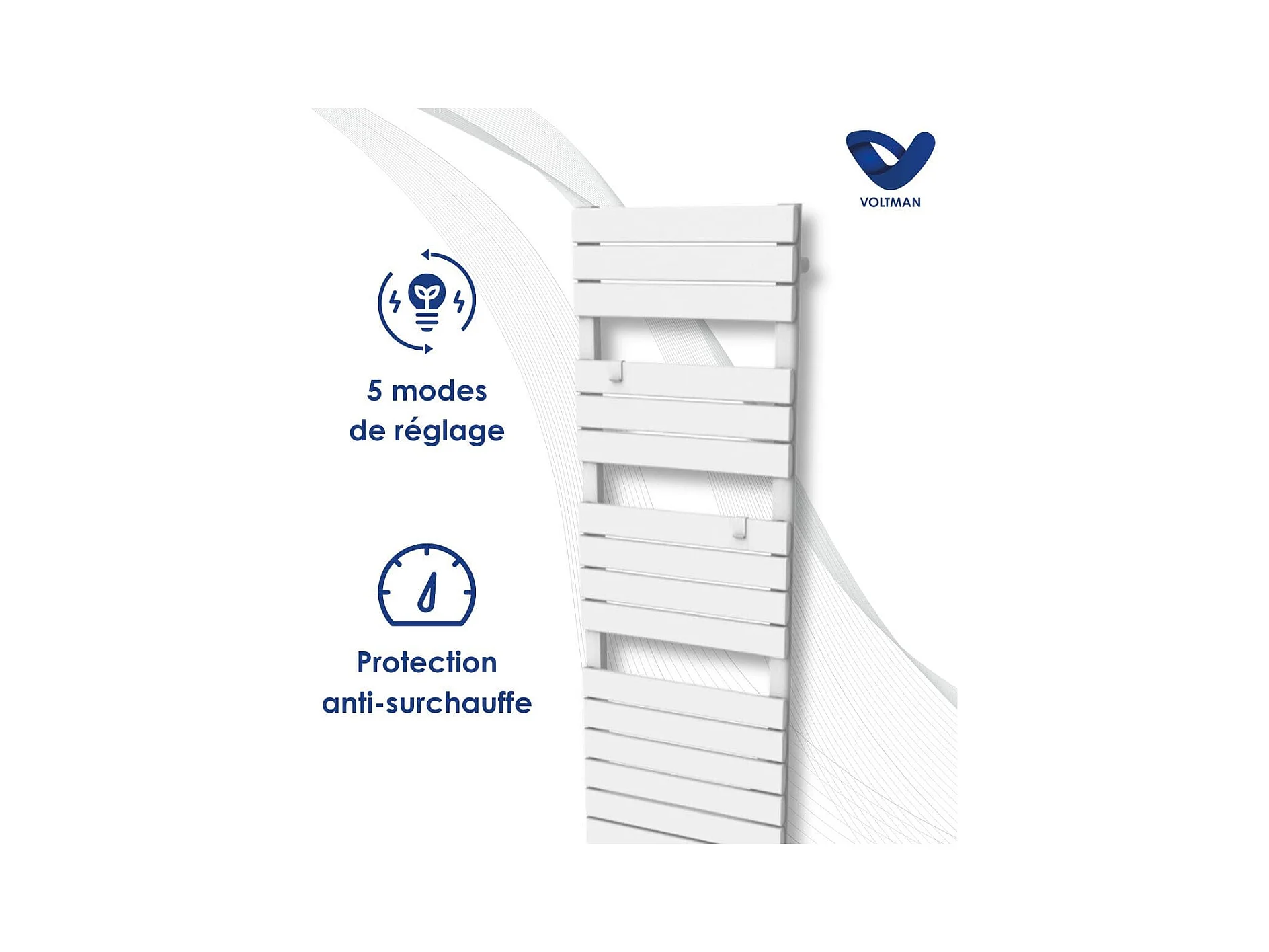 Chauffage sèche-serviette 1000W + soufflant 750W - Blanc - Voltman