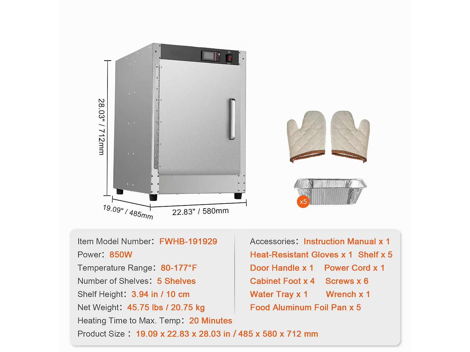Chauffe-plats Industriel à 5 Niveaux SucceBuy, Armoire de Concession avec Bac à Eau pour Réchauffer Aliments