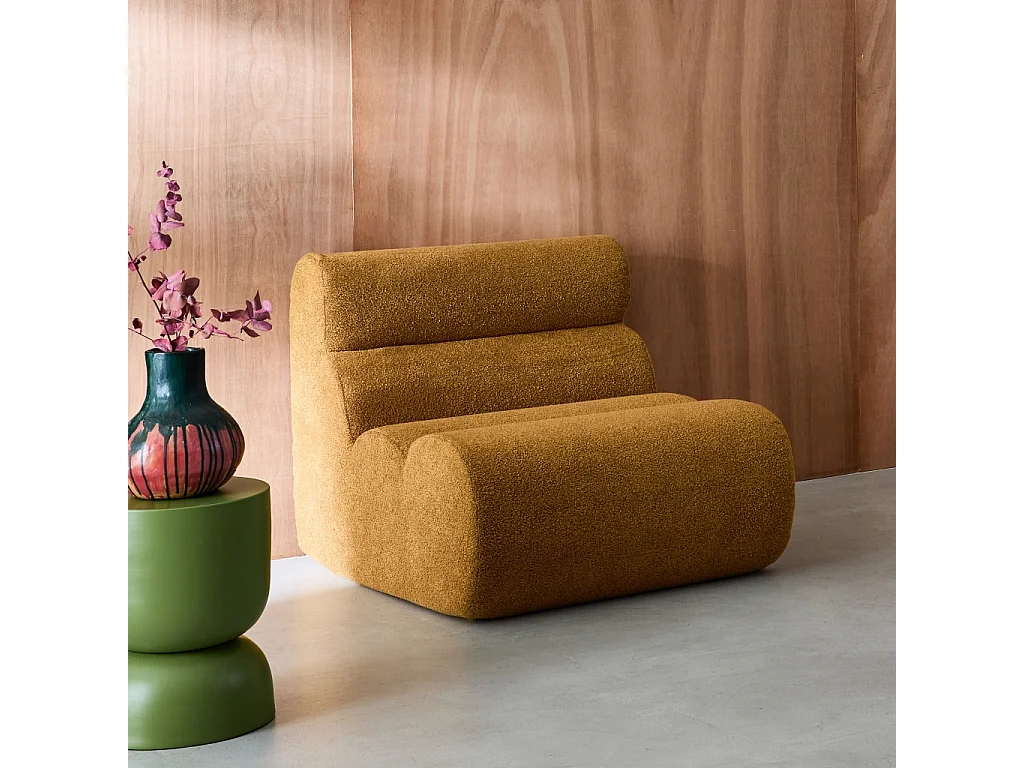Chauffeuse bouclette texturée moutarde 1 place - L 81 x P 99 x H 75cm - Nova