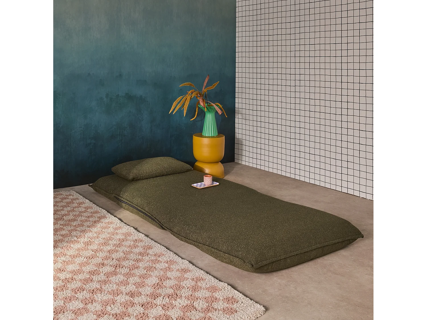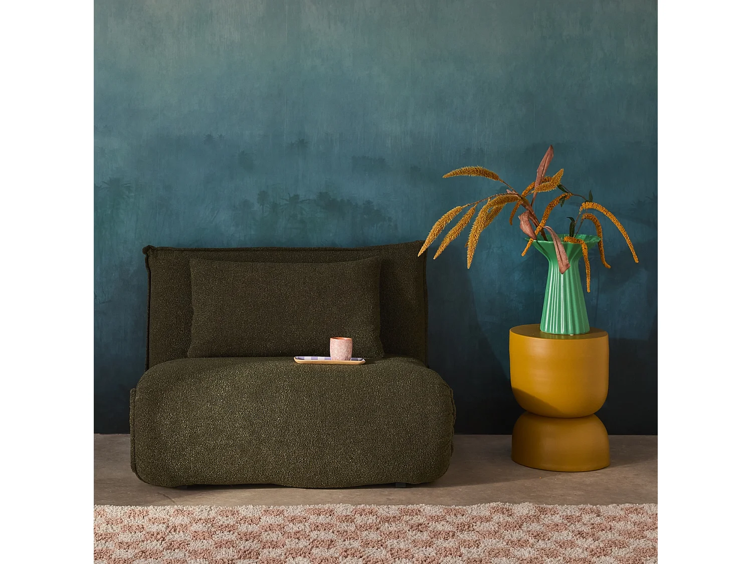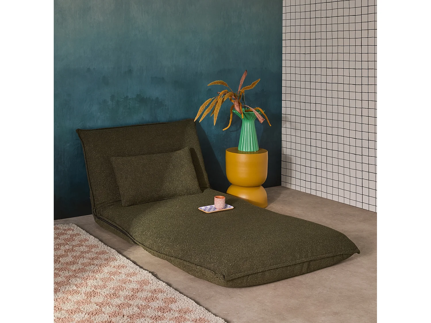 Chauffeuse convertible 1 place en bouclette texturée kaki L 99 x P 80 x H 66 cm - Fleeep