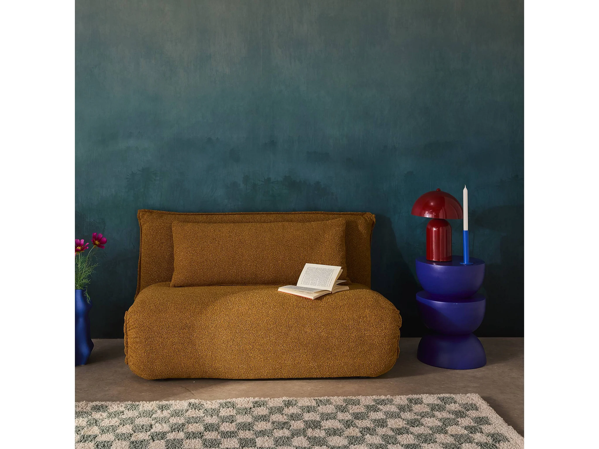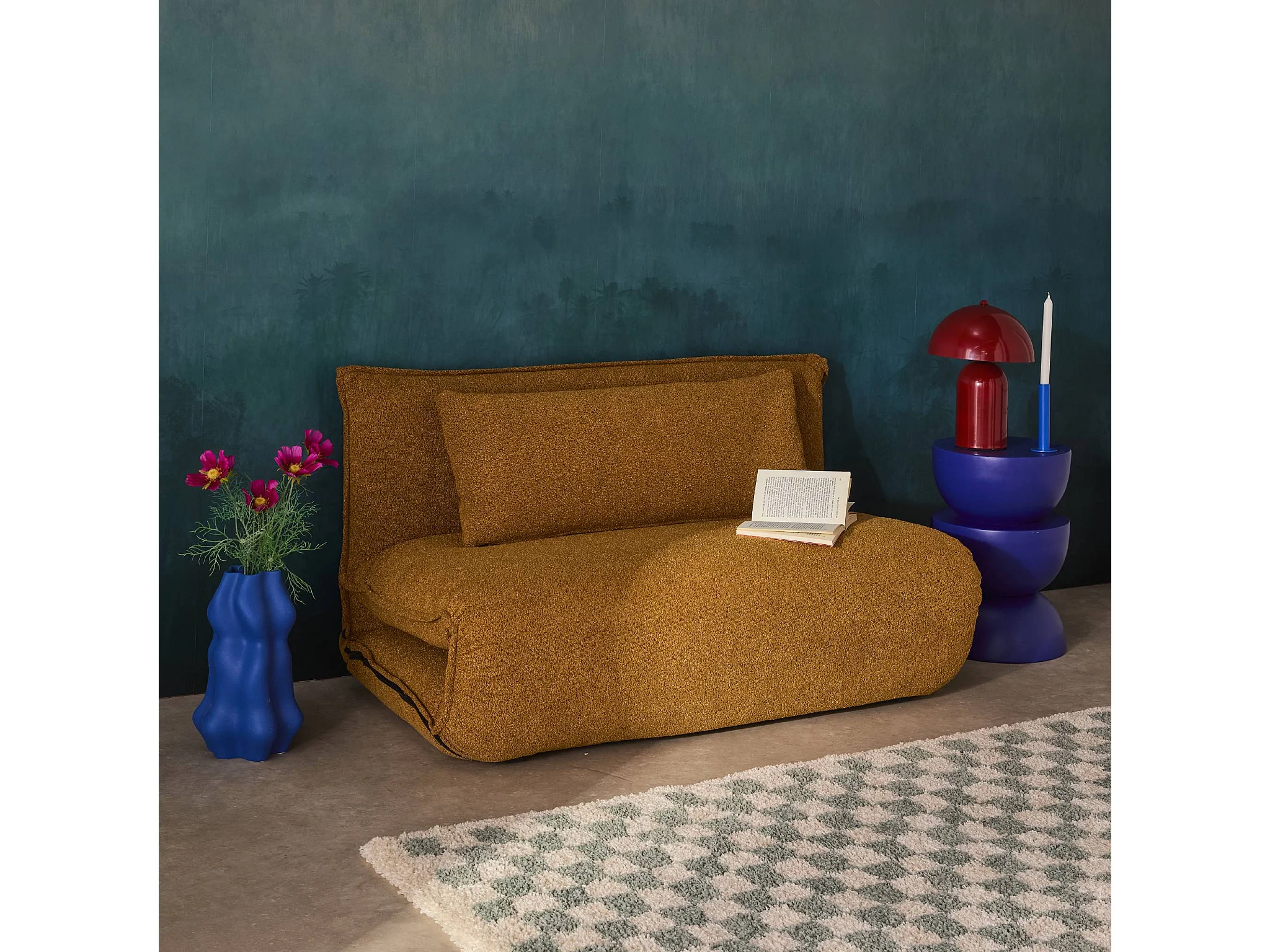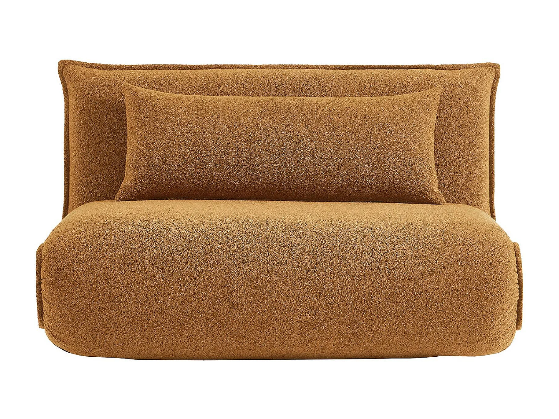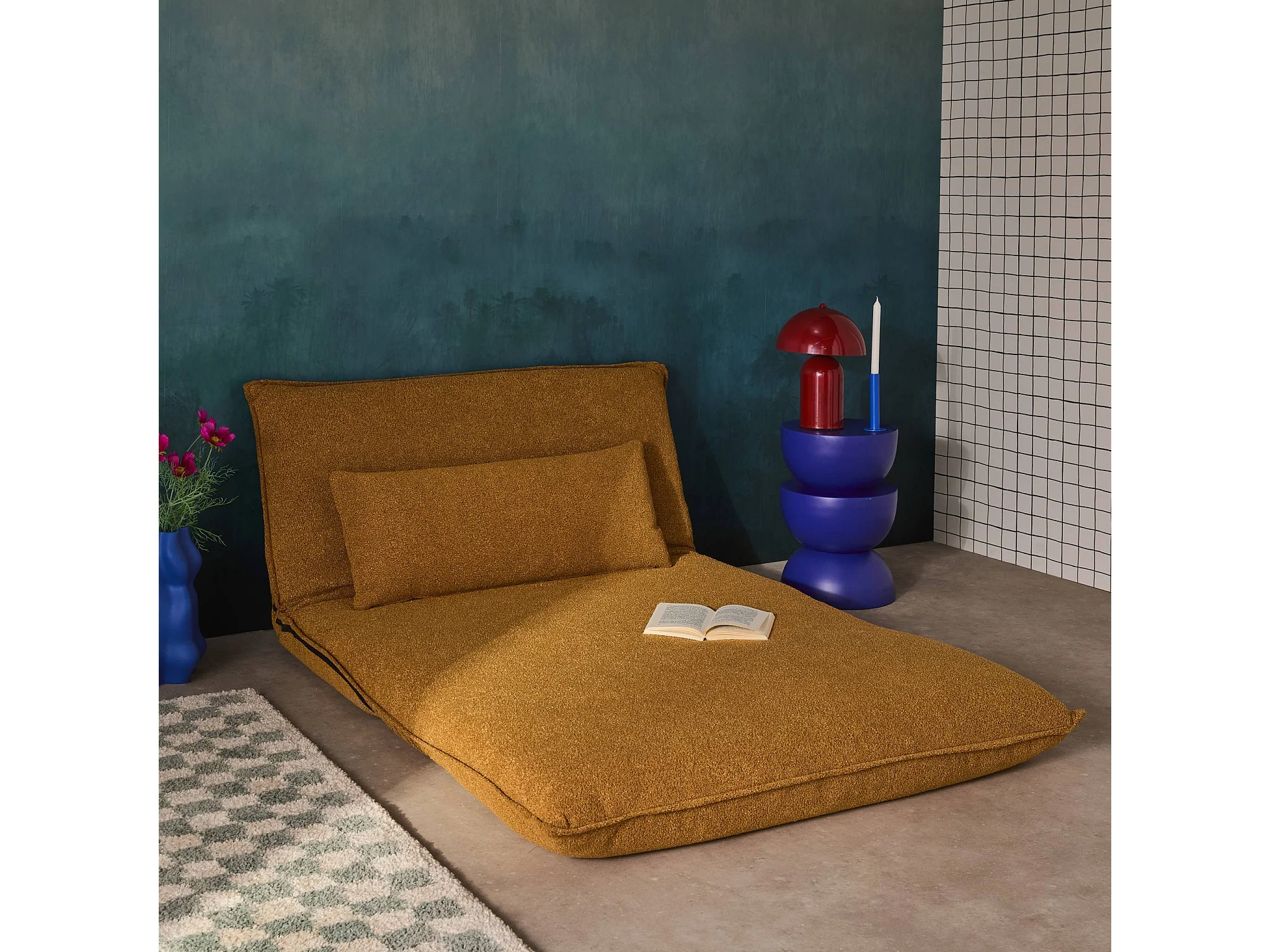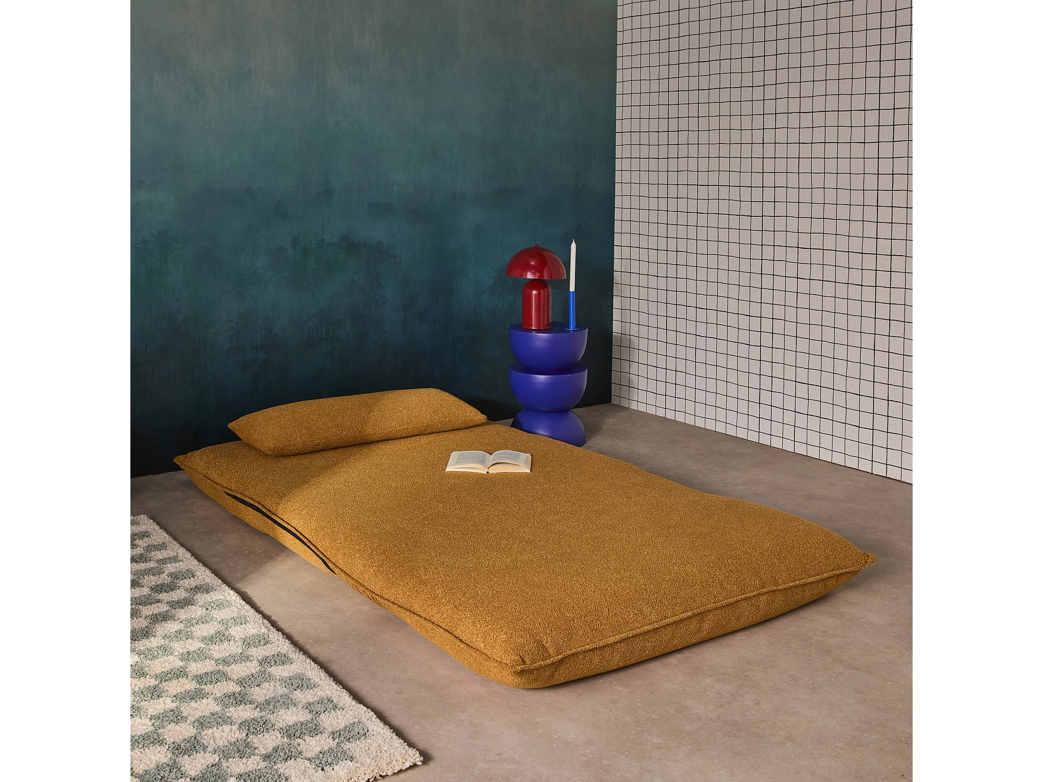 Chauffeuse convertible 2 places en bouclette texturée moutarde L 120 x P 80 x H 66 cm - Fleeep