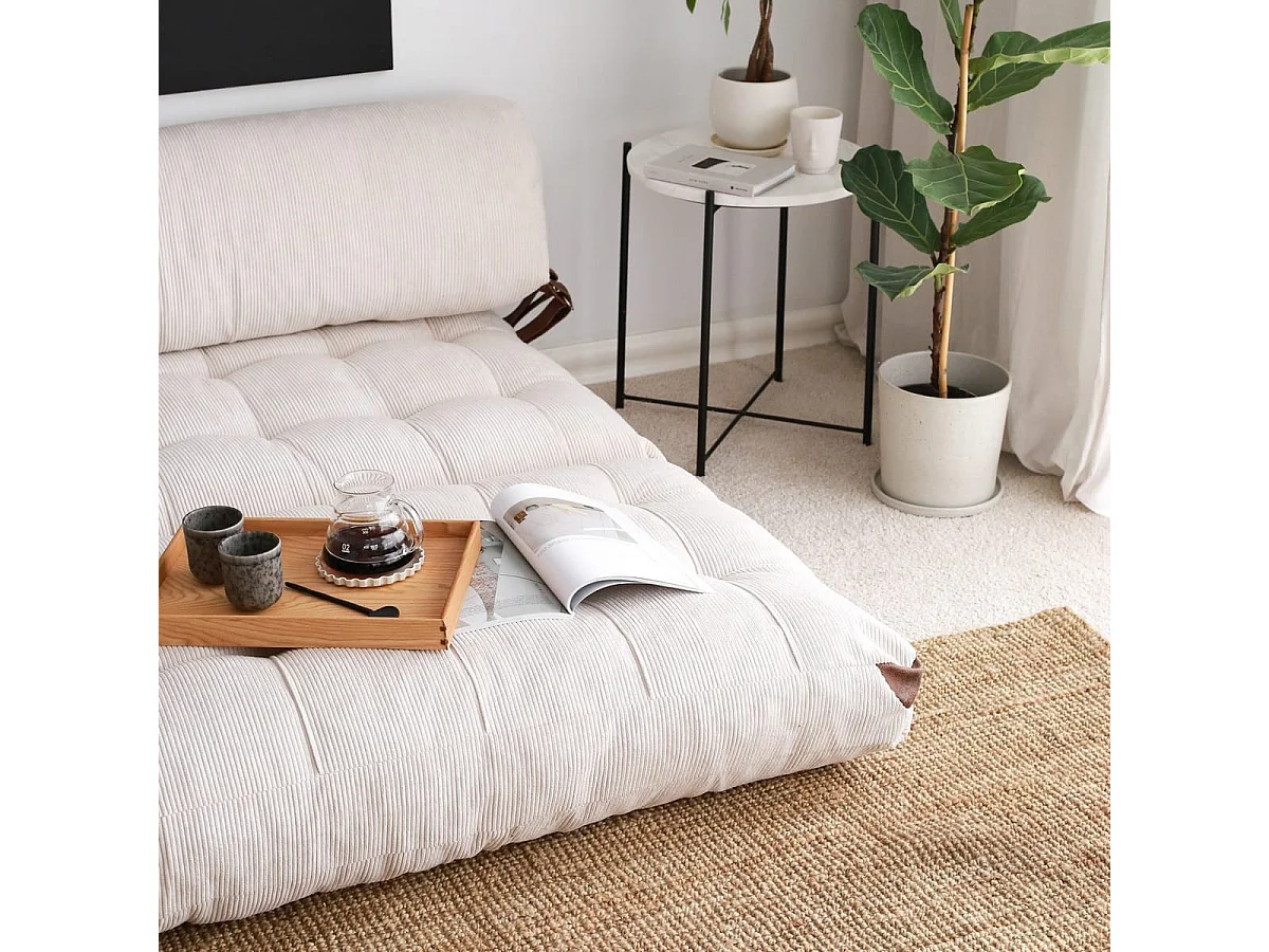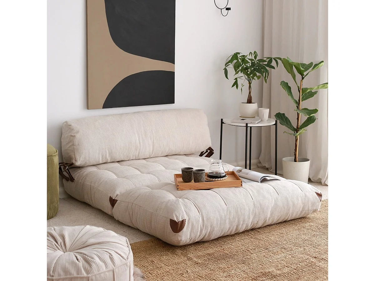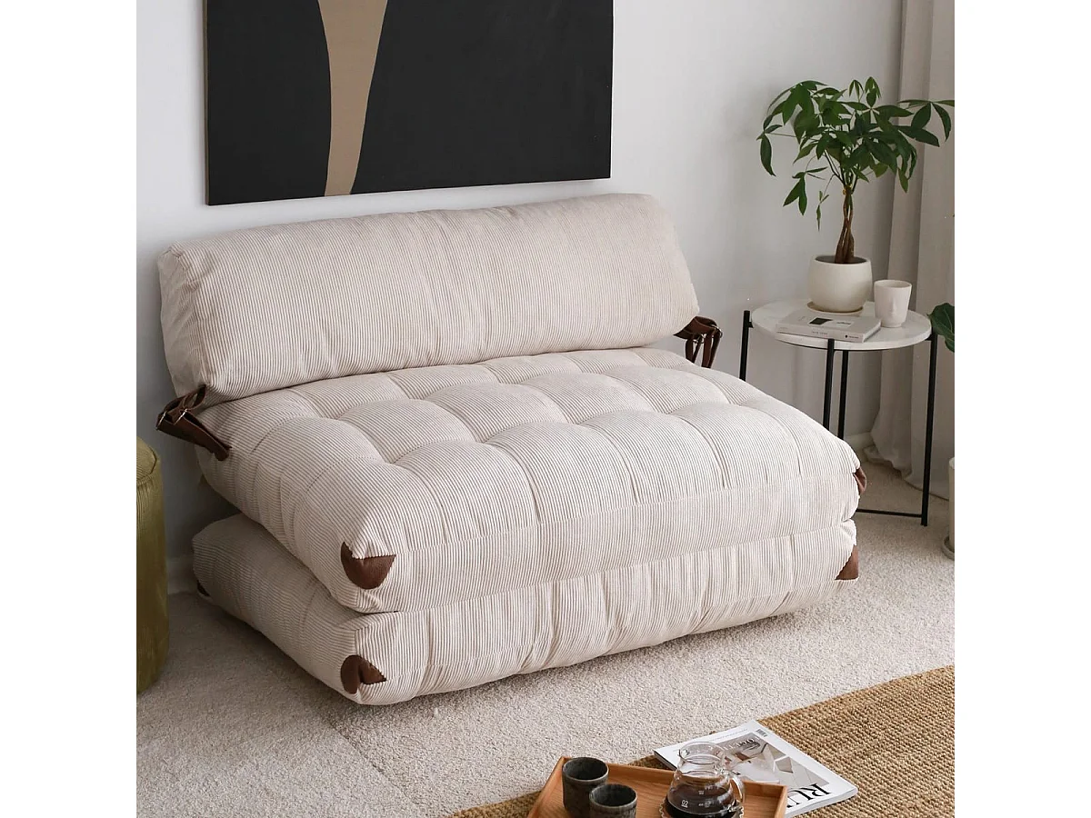 Chauffeuse convertible 2 places en velours côtelé beige - Lucho
