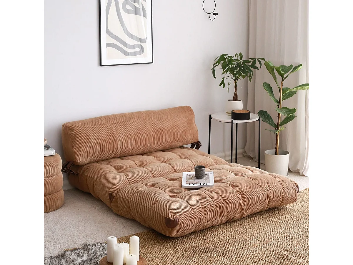 Chauffeuse convertible 2 places en velours côtelé camel - Lucho