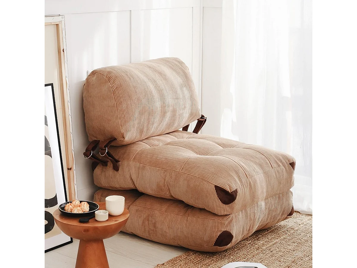 Chauffeuse convertible en velours côtelé camel - Lucho