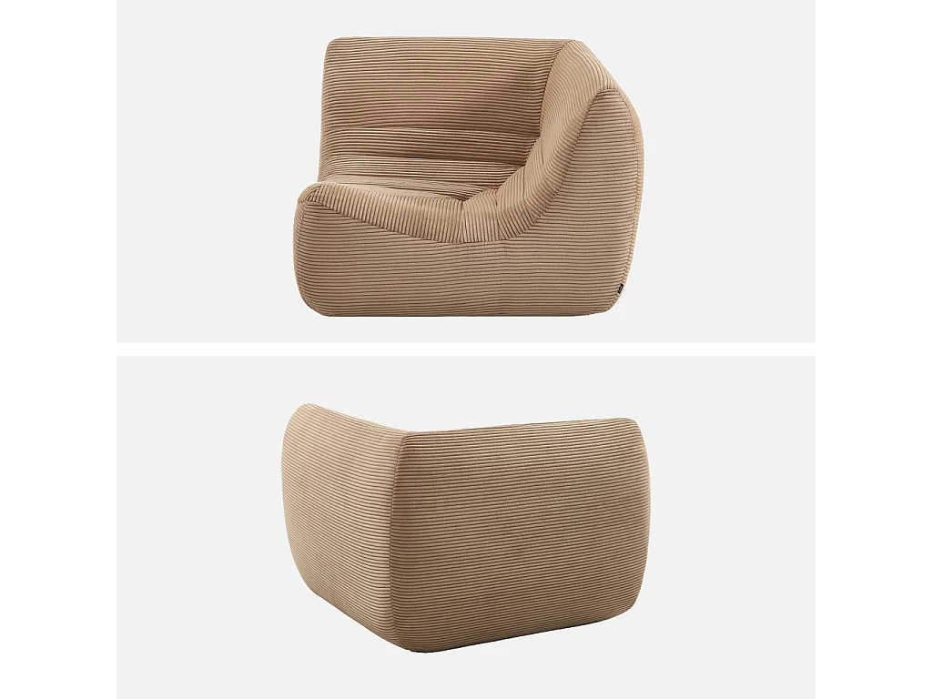 Chauffeuse d'angle velours côtelé 1 place beige foncé - Sokol