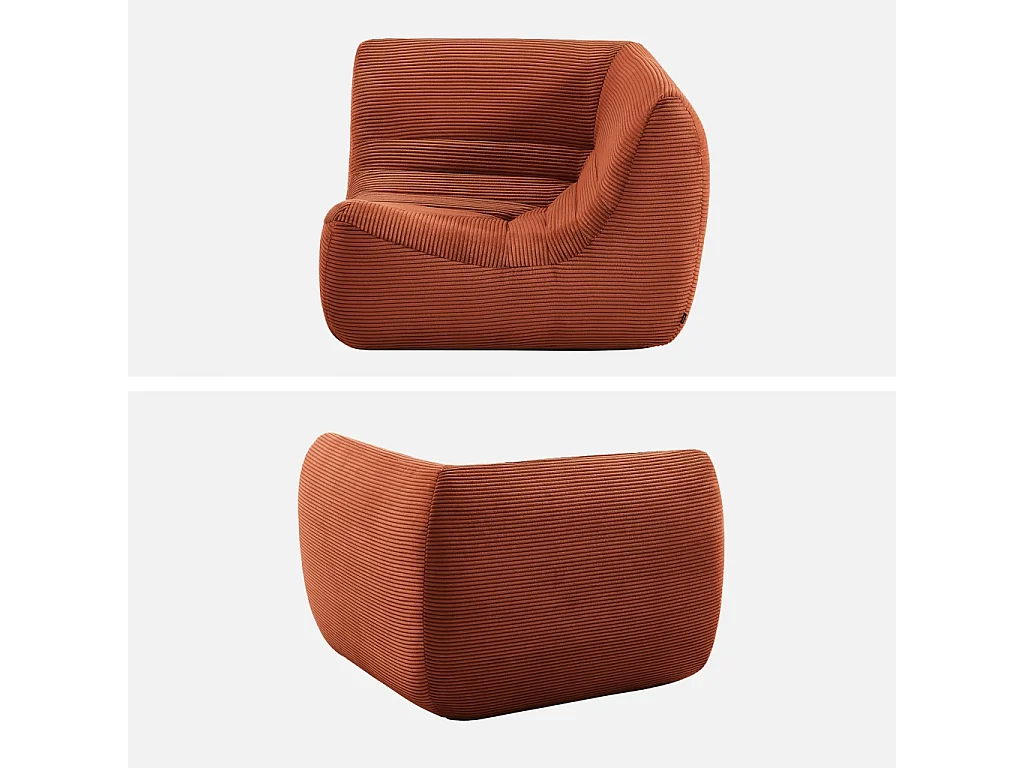 Chauffeuse d'angle velours côtelé 1 place terracotta - Sokol