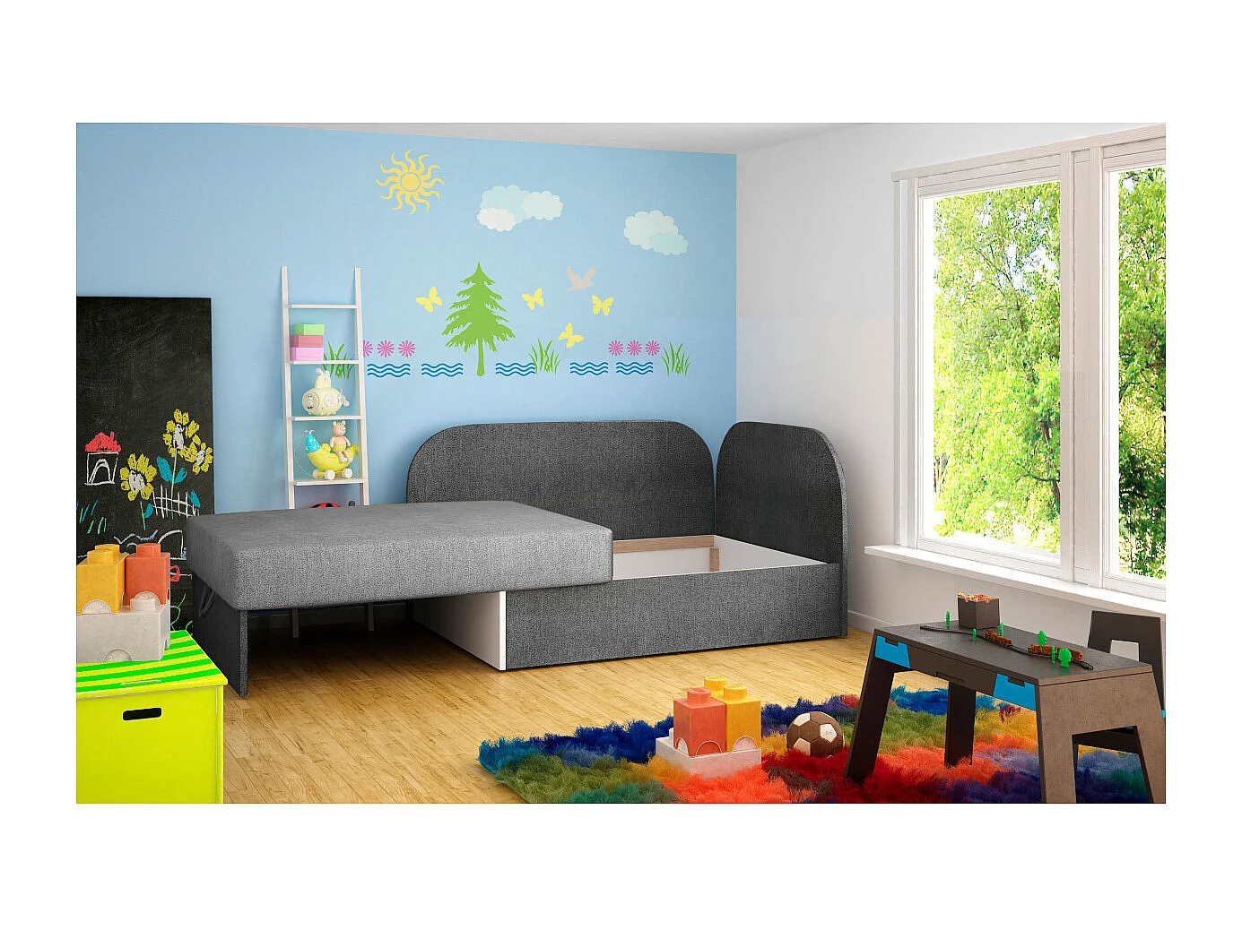 Chauffeuse/Lit enfant ZAYAH en tissu - Gris clair