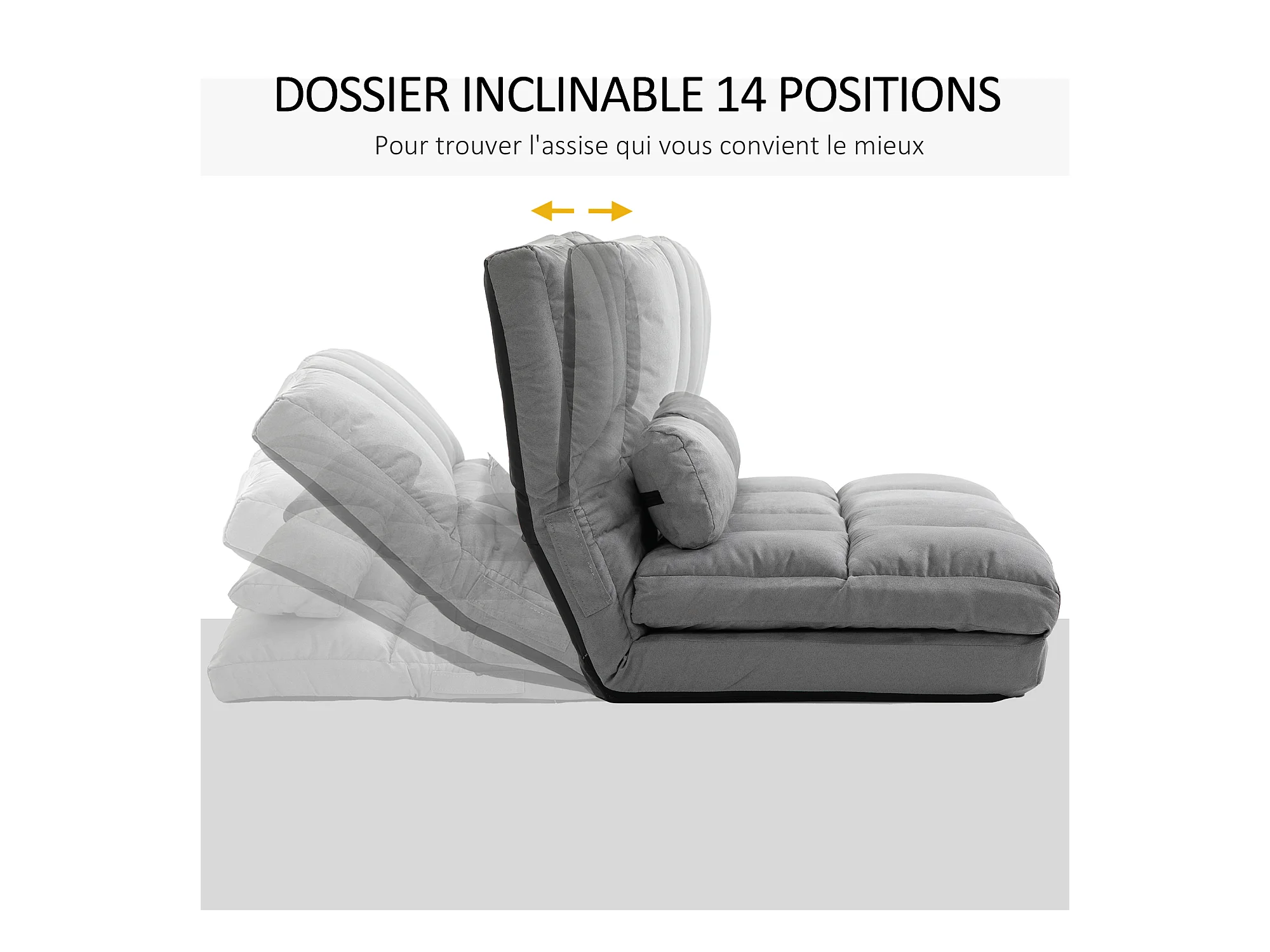 Chauffeuse - matelas d'appoint pliant - fauteuil convertible - inclinaison dossier réglable 14 positions - 2 coussins inclus - polyester aspect suédé gris