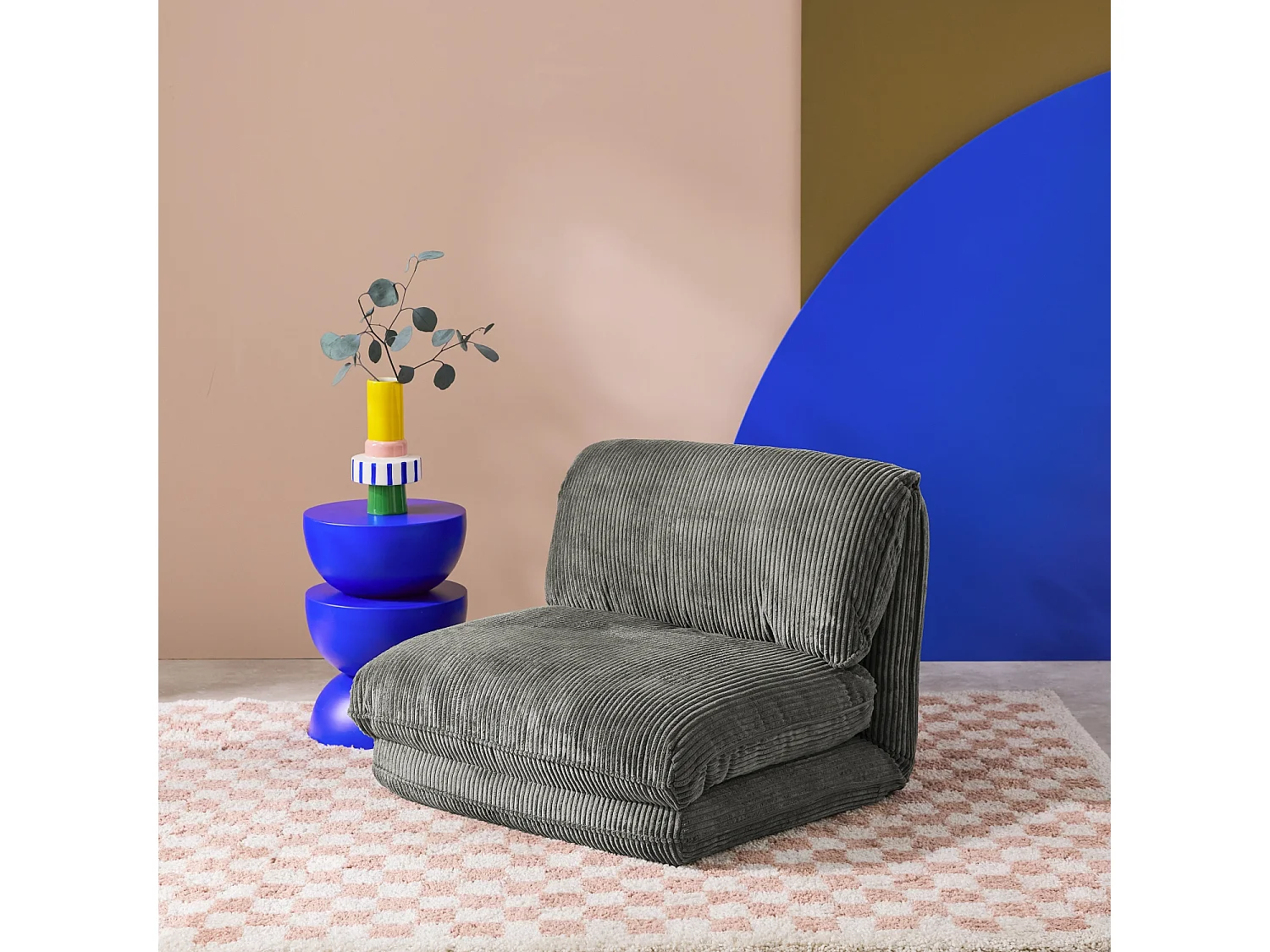 Chauffeuse matelas gris convertible velours côtelé grosse côte 1 place Cosy