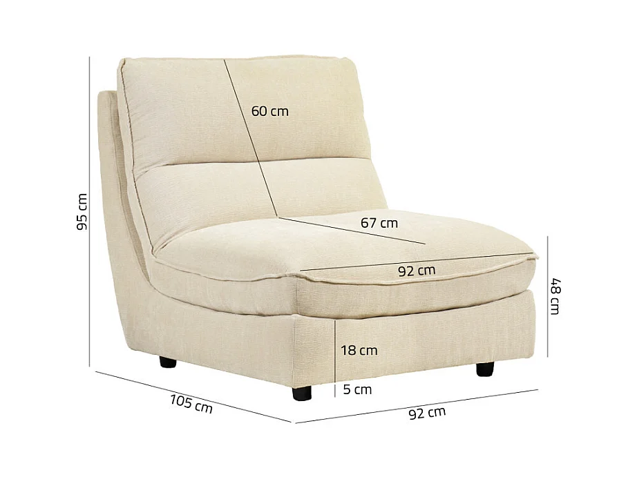 Chauffeuse pour canapé modulable en tissu doux écru - CHARLES