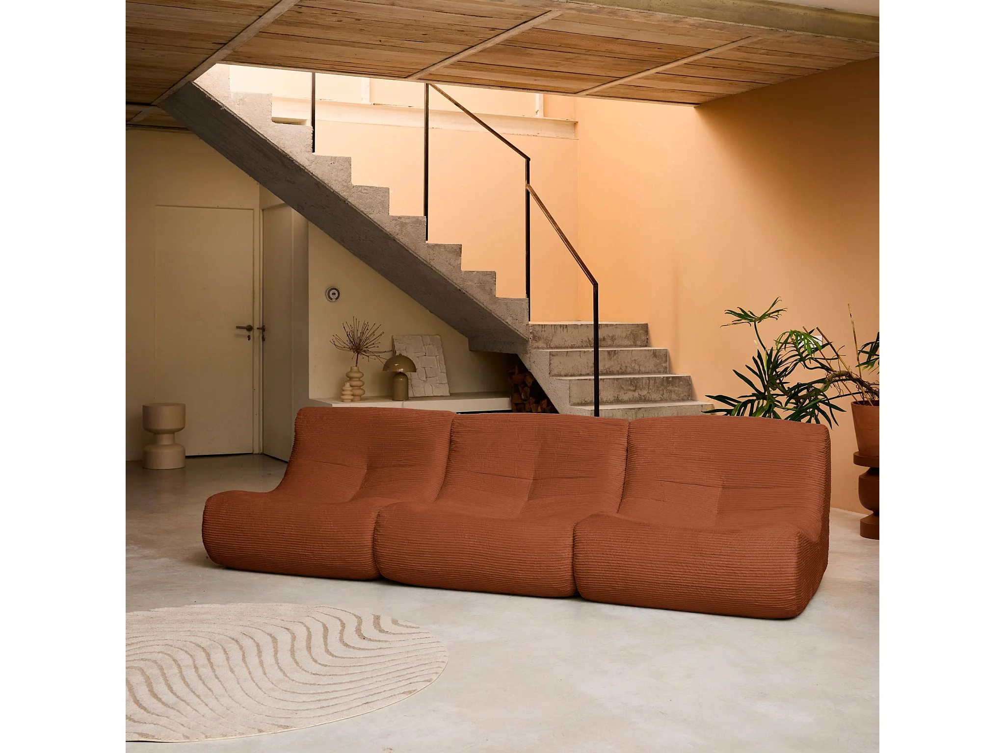 Chauffeuse velours côtelé 3 places terracotta L 91 x P 105 x H 72 cm - SOKOL