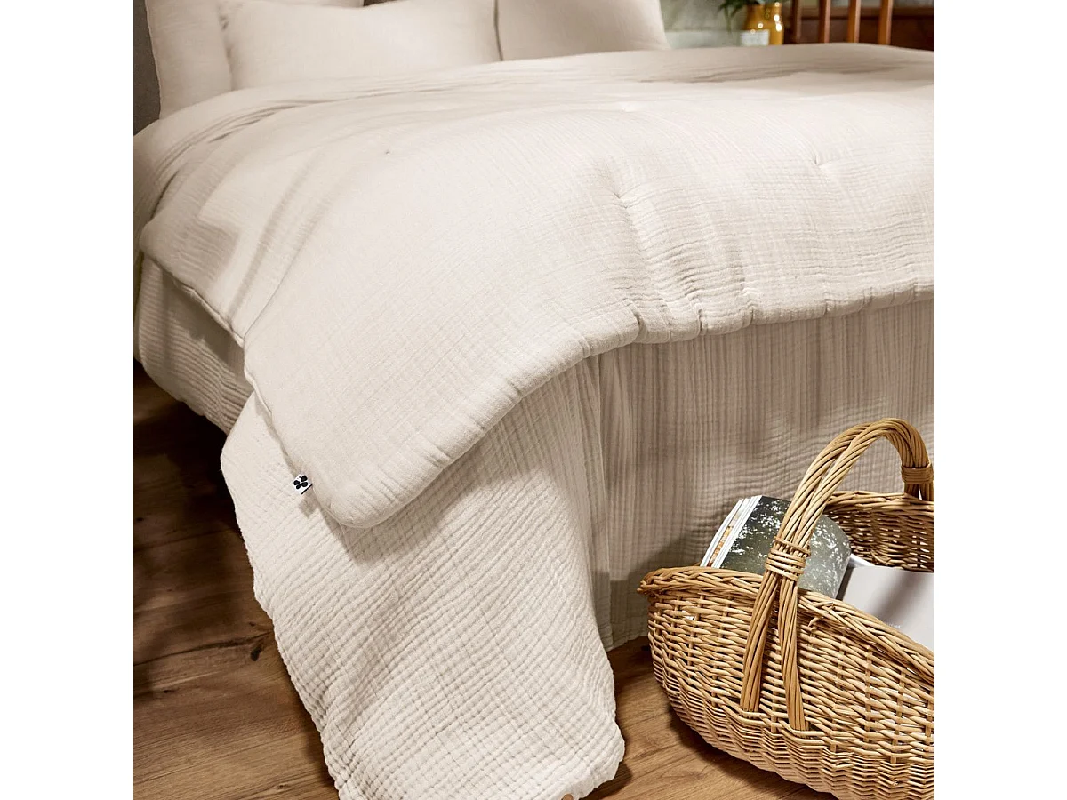 OUREA - Couvre-pied 150x150cm Capitonné Gaze de Coton Pampa