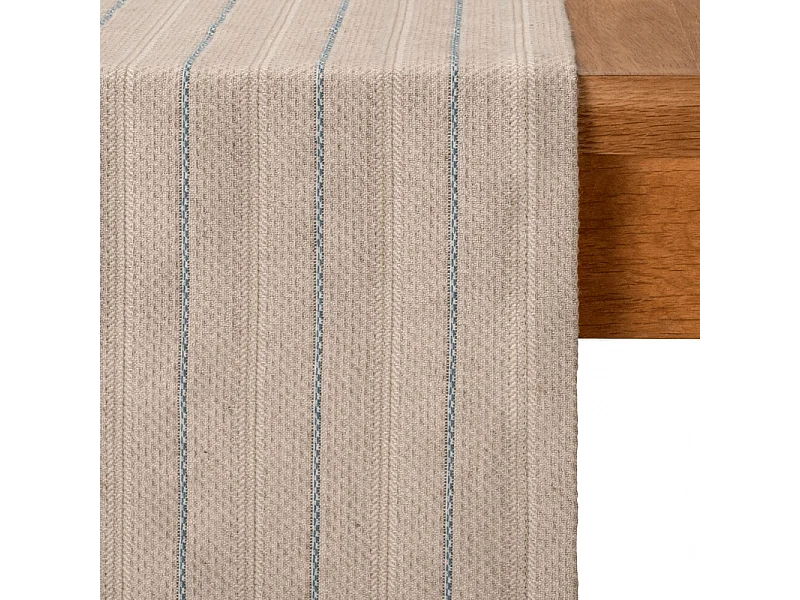 Chemin de table lin et coton beige, bleu 50 x 150 cm - PARDIGON 0006