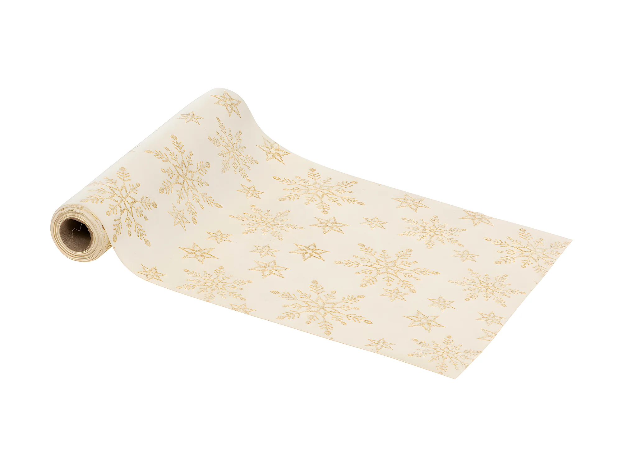 Chemin de table Tissu en Velours Blanc avec Flocons pailletés dorés 28 x 300 cm