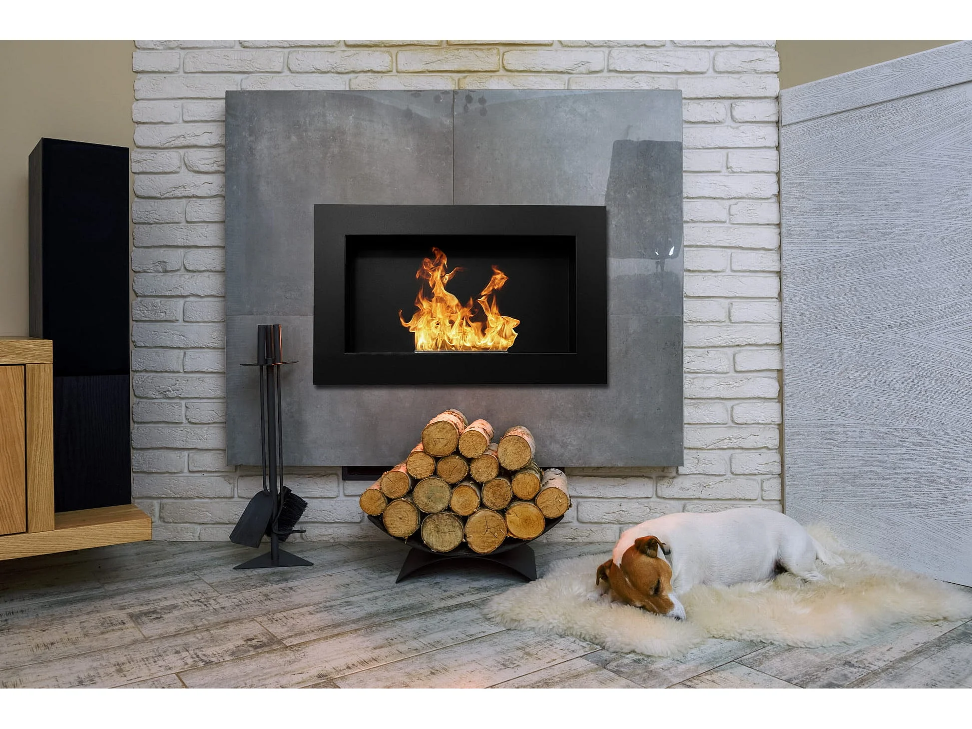 Cheminée à bioéthanol Pisa Black, murale ou encastrable, L 65xP 12xH 40
