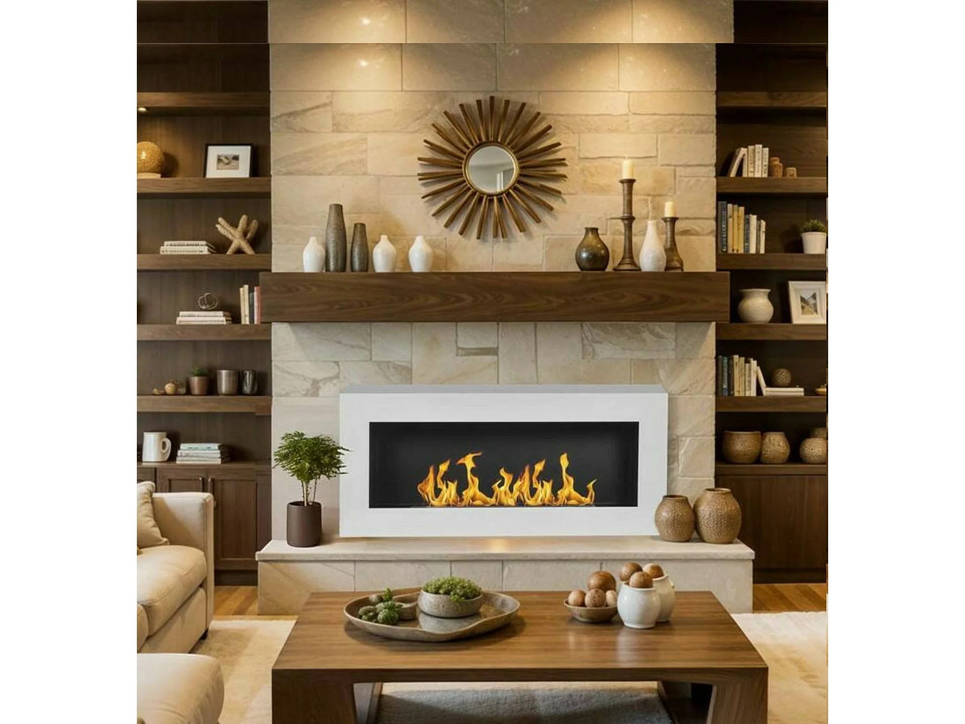 Cheminée à bioéthanol Zagreb, capacité 0,75 L, Made in Italy, 90x12x40h cm blanc
